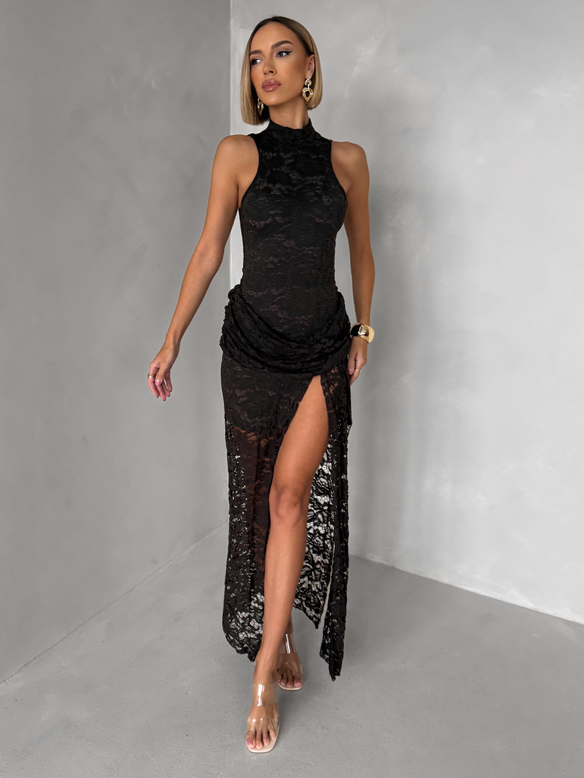 Tmavě hnědé společenské krajkové šaty PURELY s vlečkou Velikost: ONESIZE