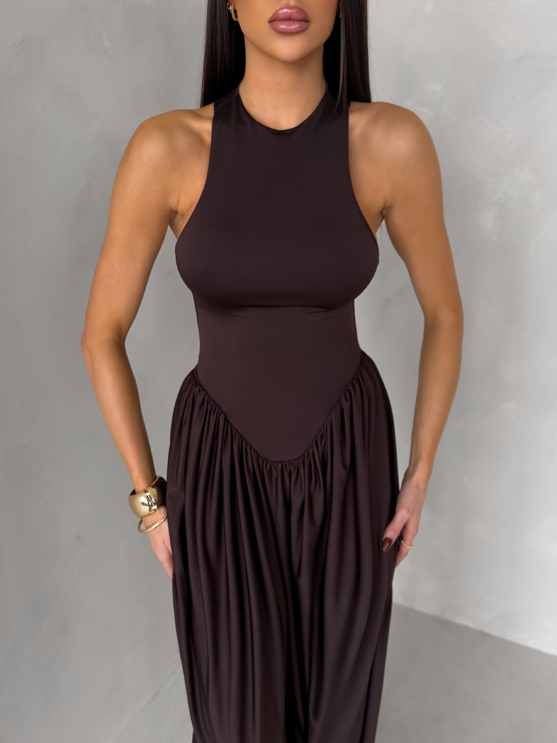 Tmavě hnědé společenské tvarující šaty ALYRION Velikost: ONESIZE