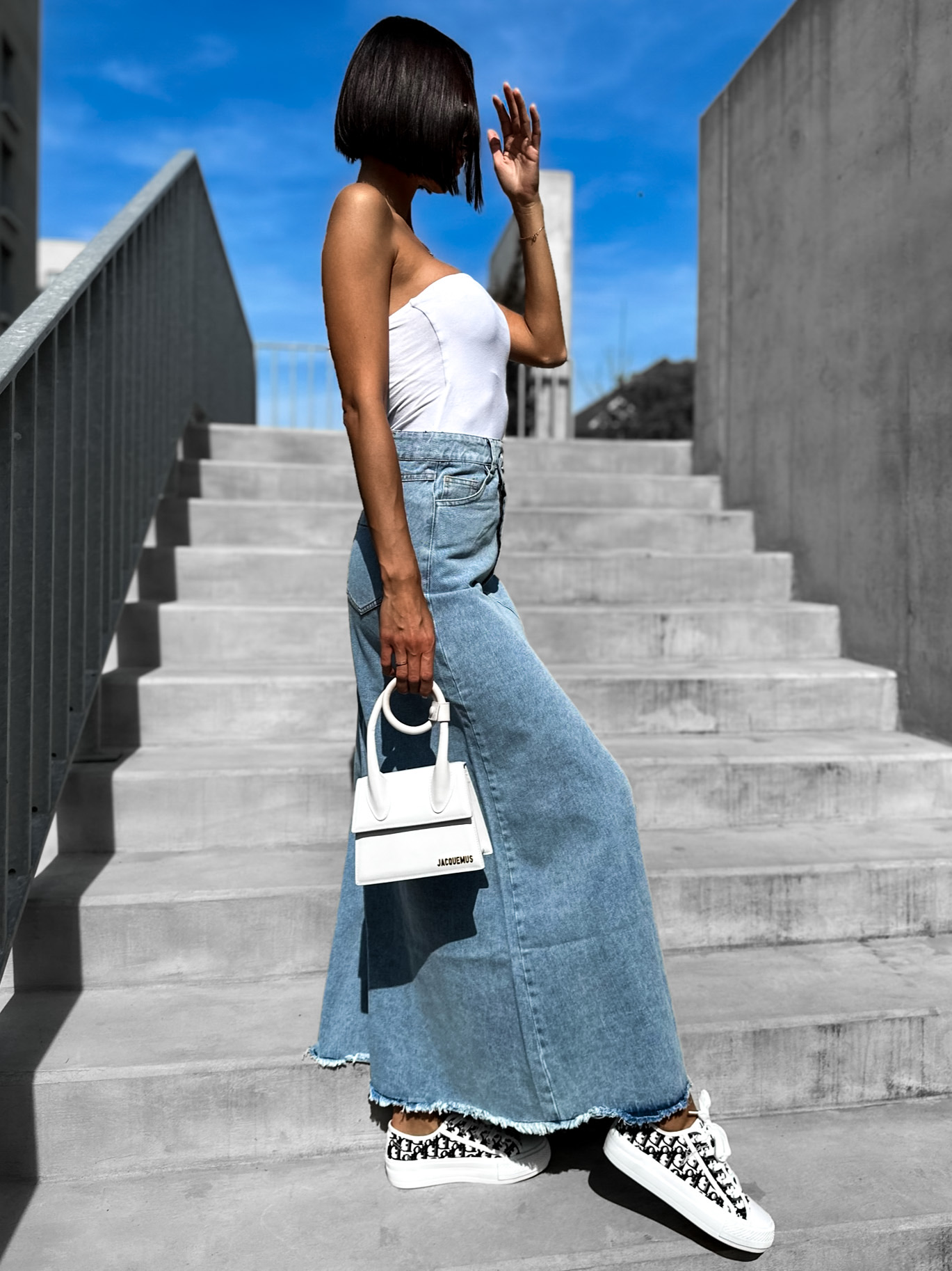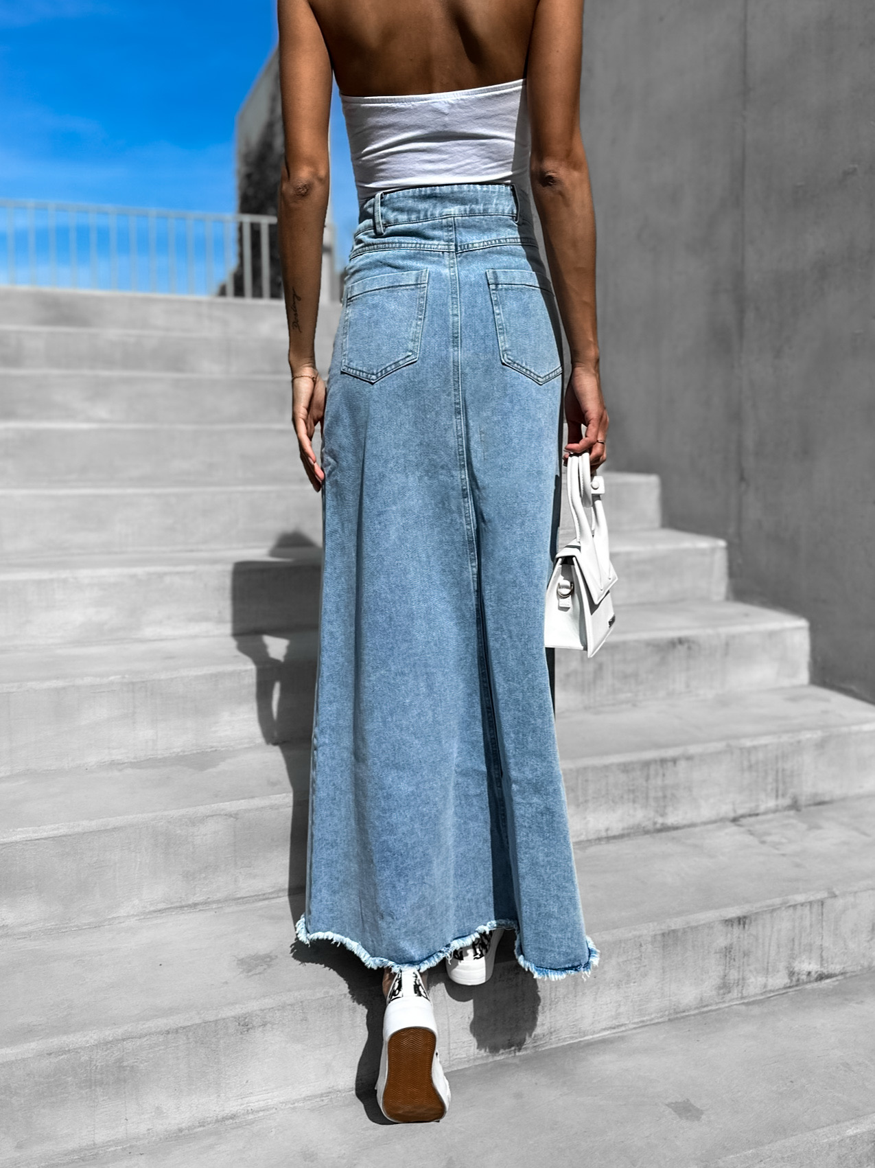 Tmavě modrá dlouhá denim sukně LOILENYS s rozparkem Velikost: S