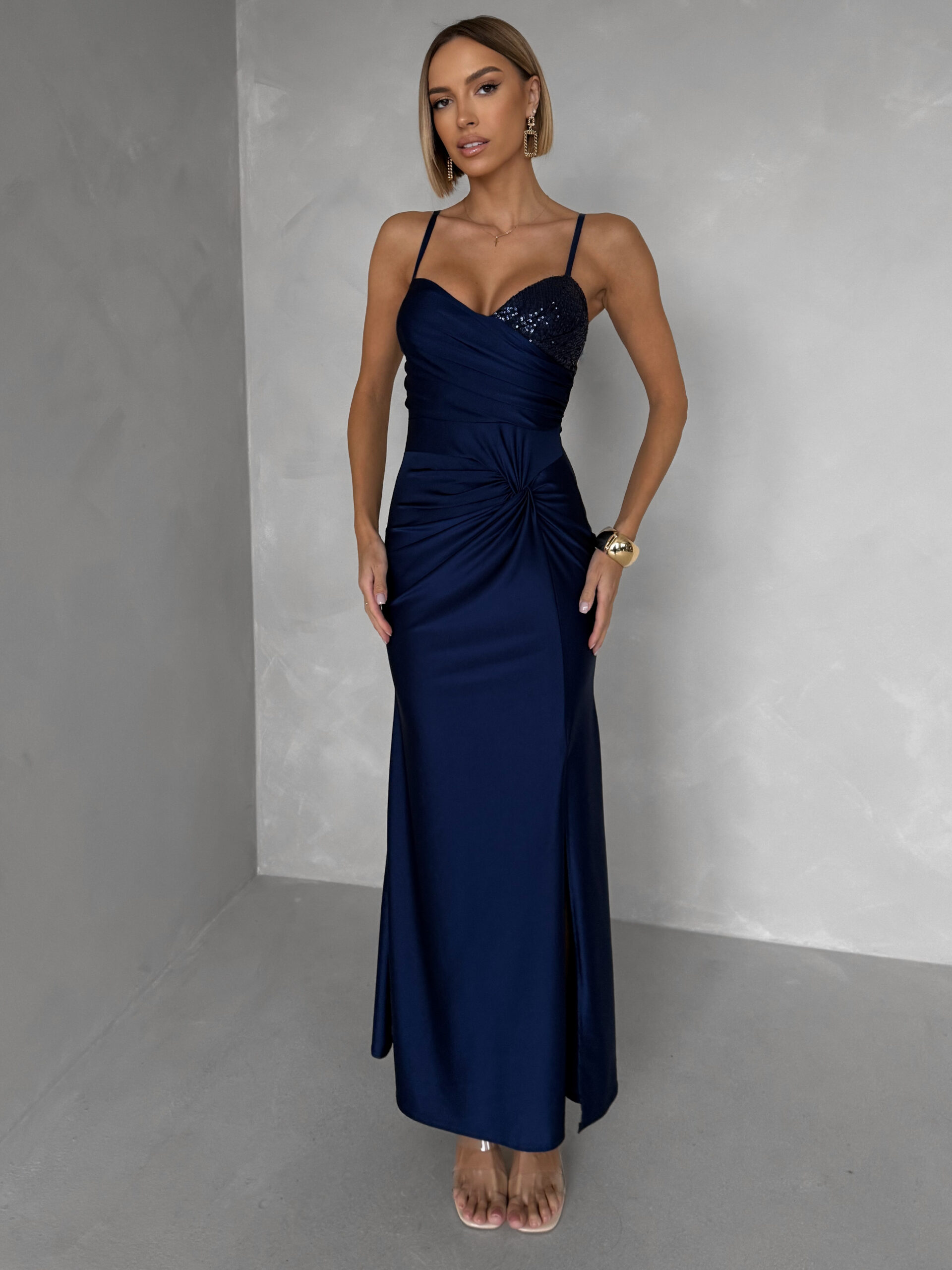 Tmavě modré společenské dlouhé šaty ALVEA Velikost: ONESIZE