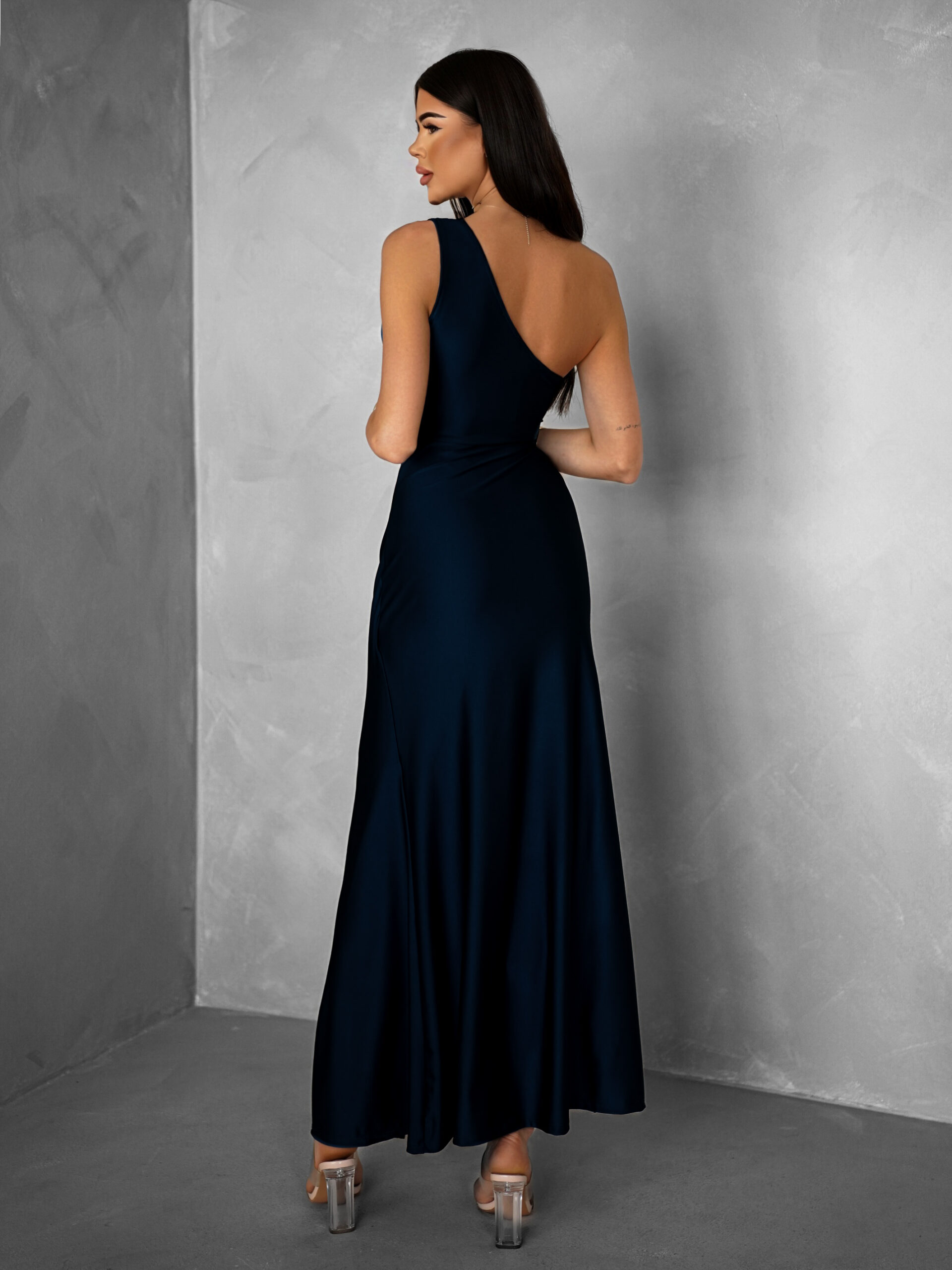 Tmavě modré společenské šaty FIAMMAR na jedno rameno Velikost: ONESIZE