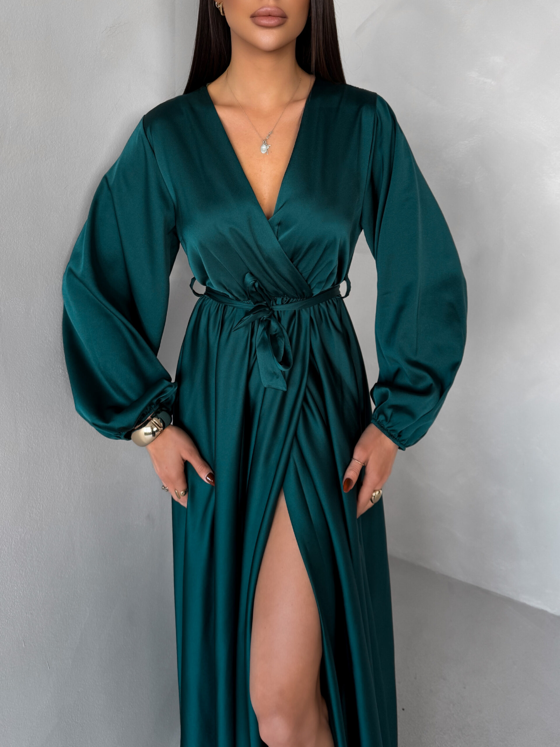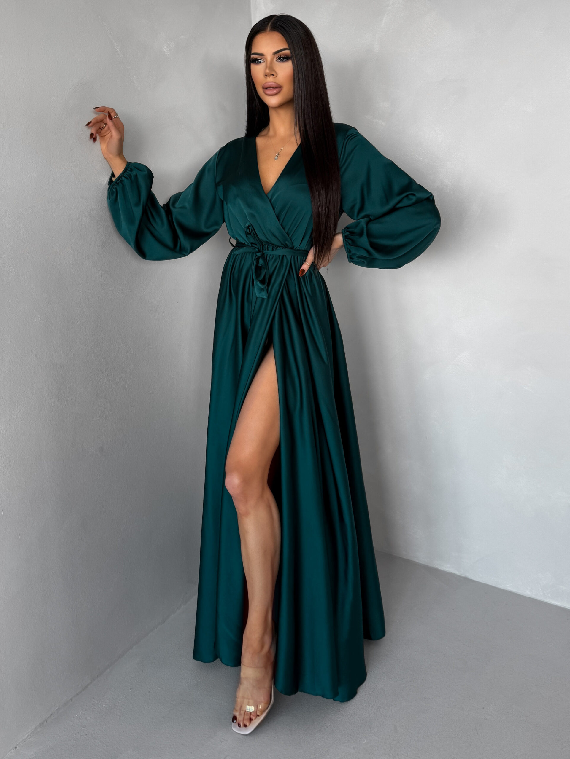Elegantní saténové maxi šaty, které okouzlí svou lehkostí a ženskostí. Hladký lesklý materiál jemně splývá po postavě a vytváří luxusní efekt při každém kroku. Zavazování v pase krásně zvýrazní siluetu a dodá modelu sofistikovaný nádech. Výrazný rozparek na sukni působí svůdně a zároveň zajišťuje maximální pohodlí a volnost pohybu. Perfektní volba pro společenské události, večírky či slavnostní příležitosti.