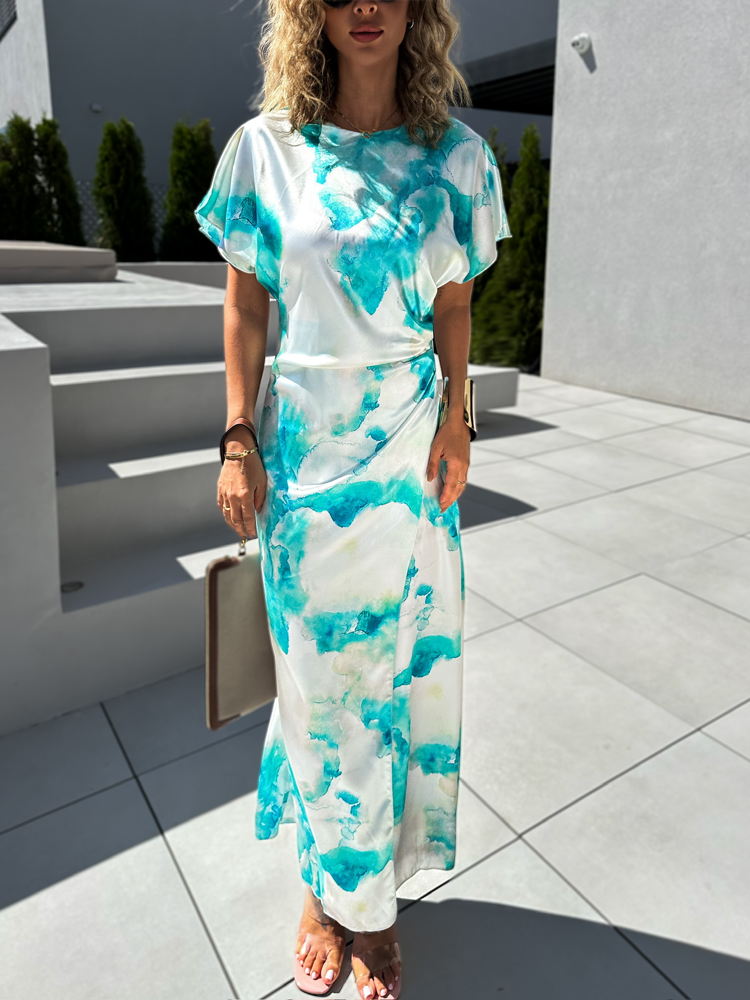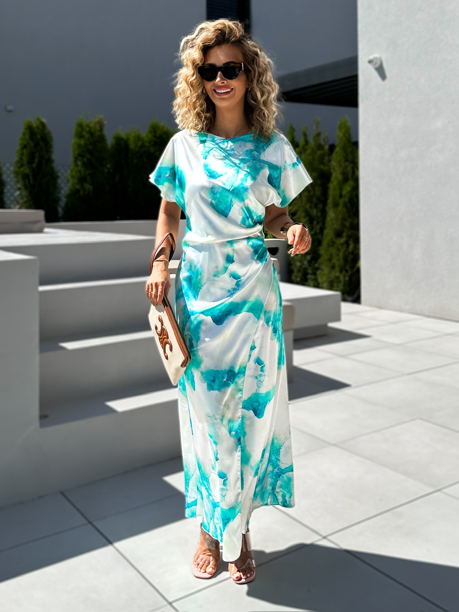 Tyrkysové dlouhé saténové šaty SAPFO Velikost: ONESIZE