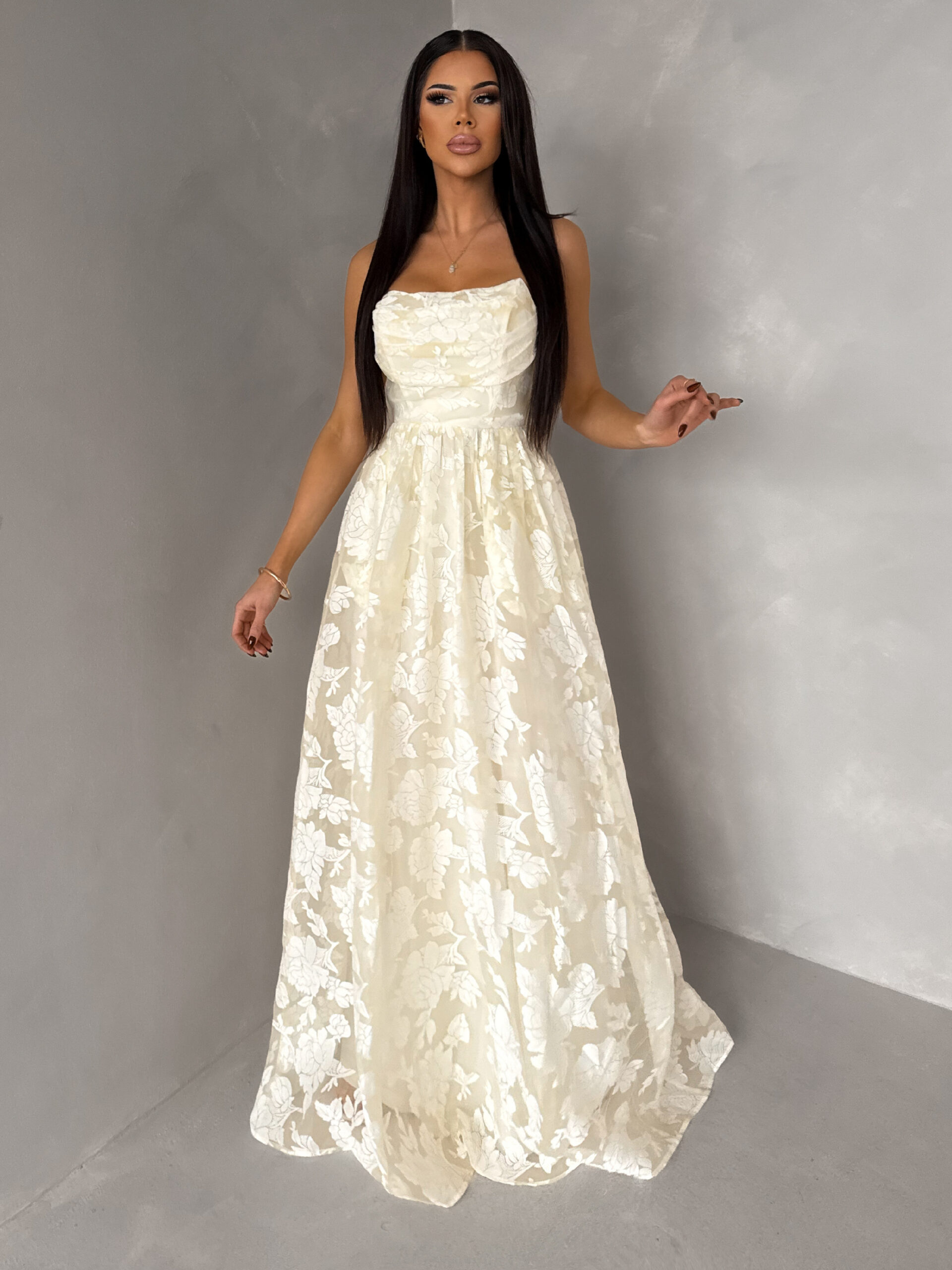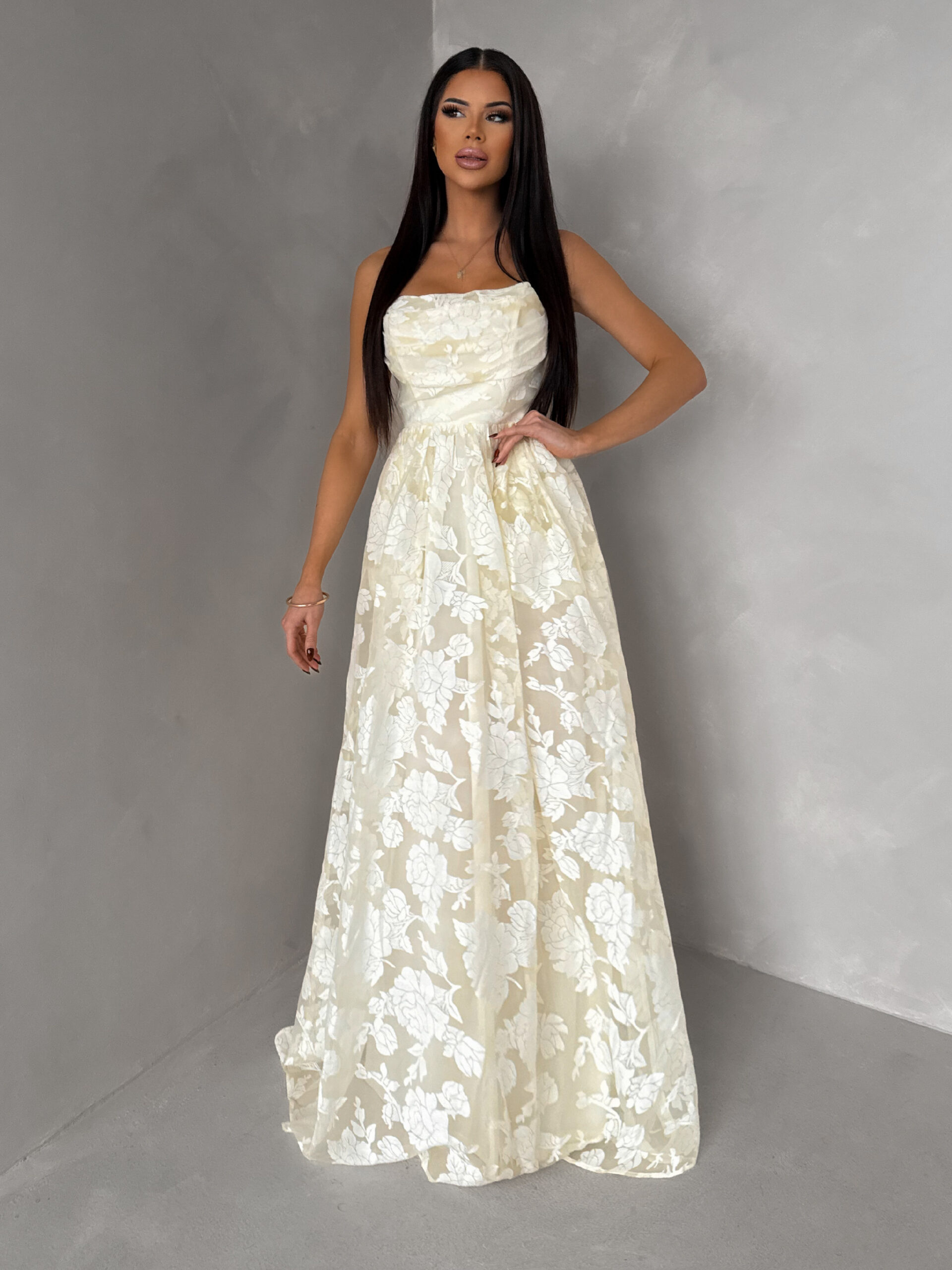 Vanilkové plesové dlouhé šaty MIRELLE s květinovým vzorem Velikost: L