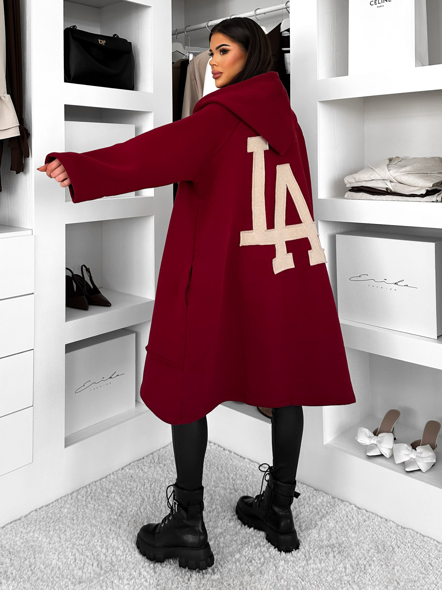 Vínová oversize dlouhá mikina PLUSYT na zip Velikost: ONESIZE