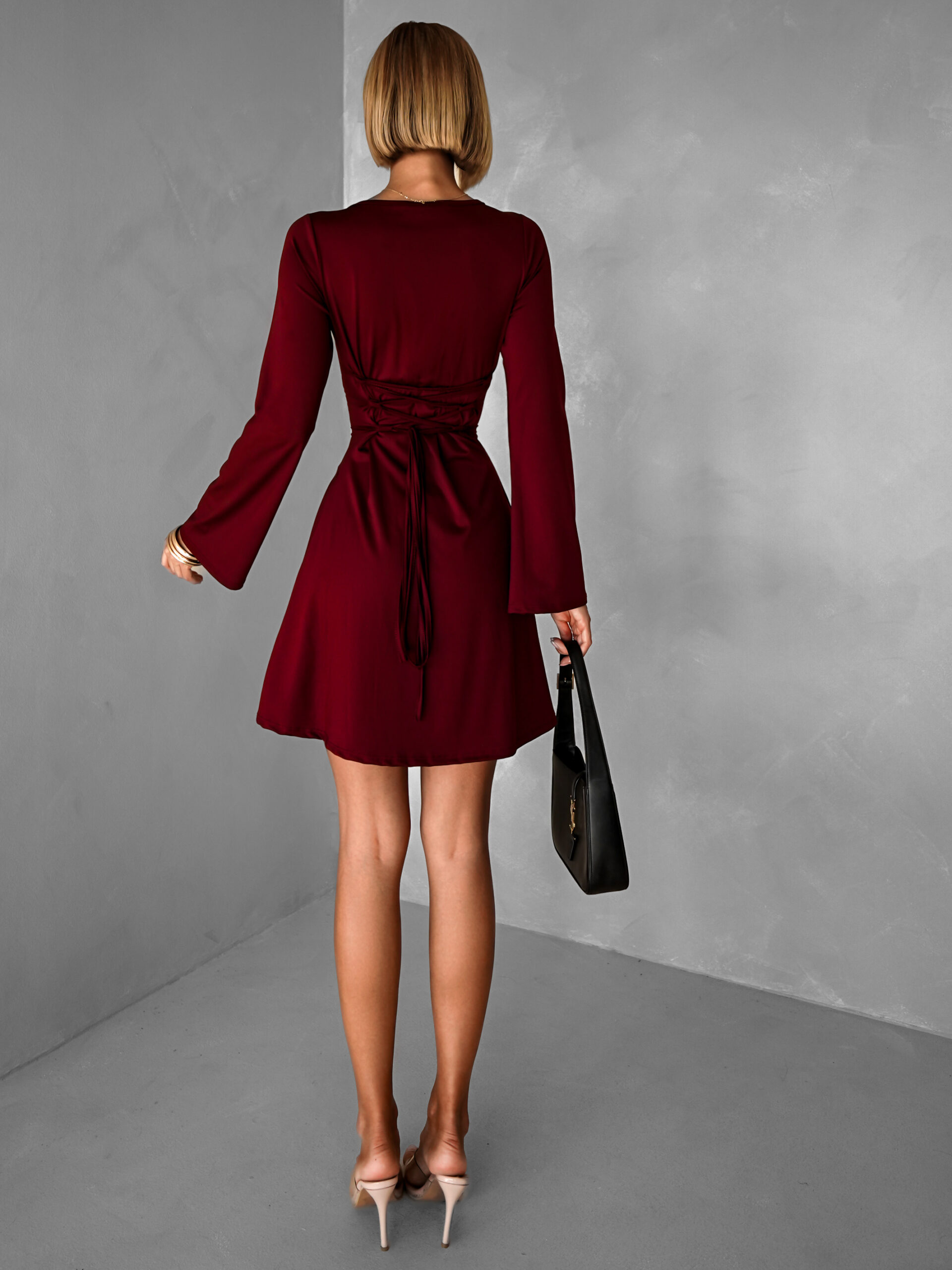 Vínové áčkové šaty STIEL s dlouhým rukávem Velikost: ONESIZE