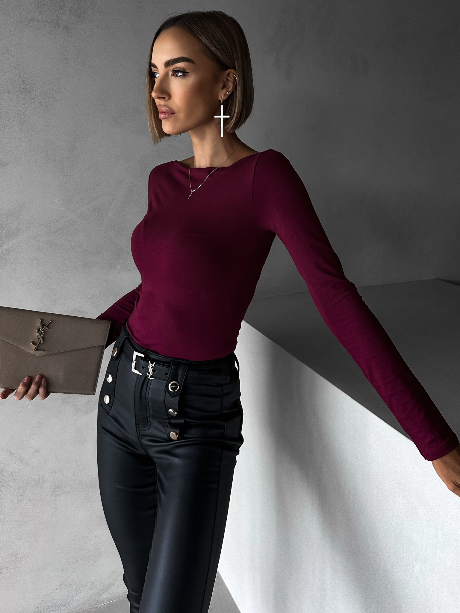 Vínové basic triko KENDEL s dlouhým rukávem Velikost: ONESIZE
