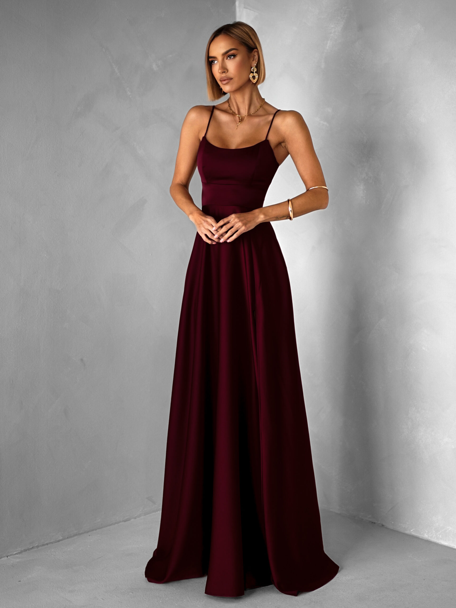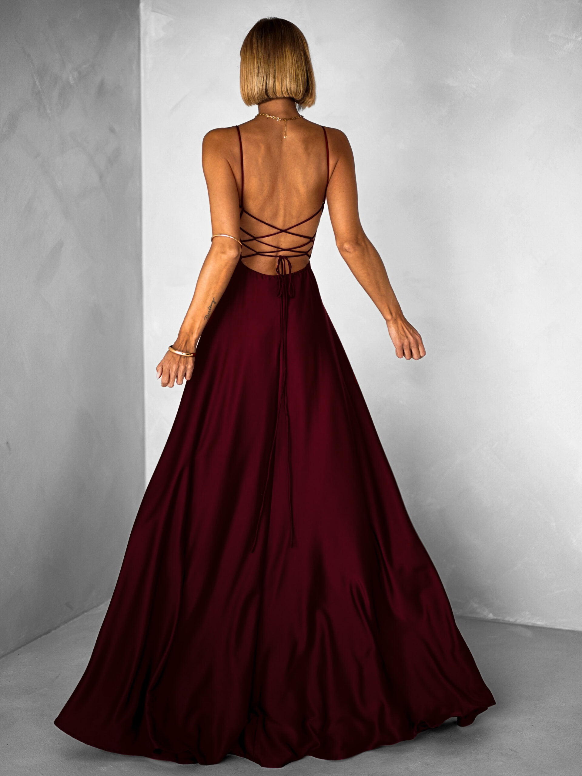 Vínové dlouhé plesové šaty CELLINES se šněrováním a rozparkem Velikost: L