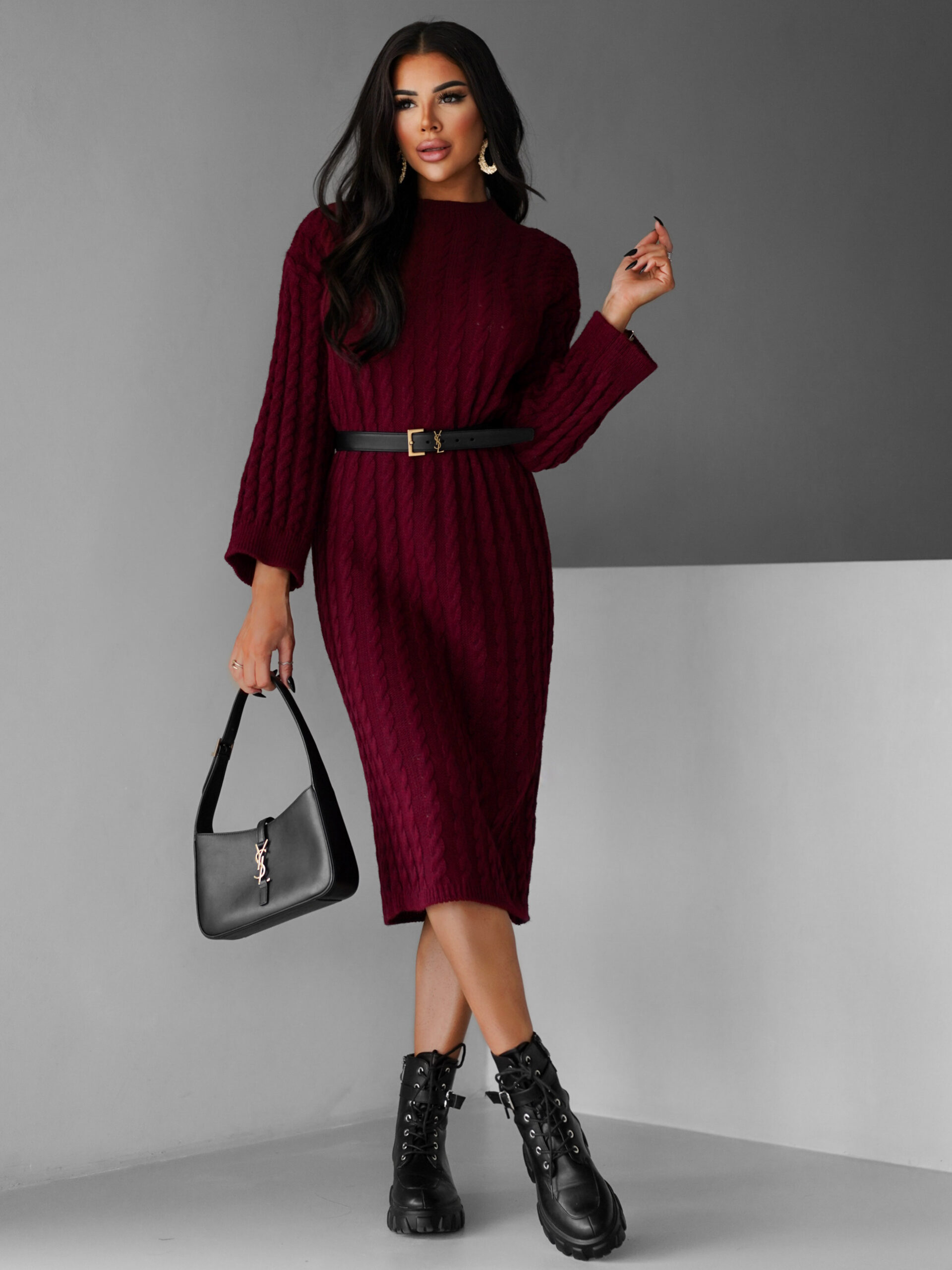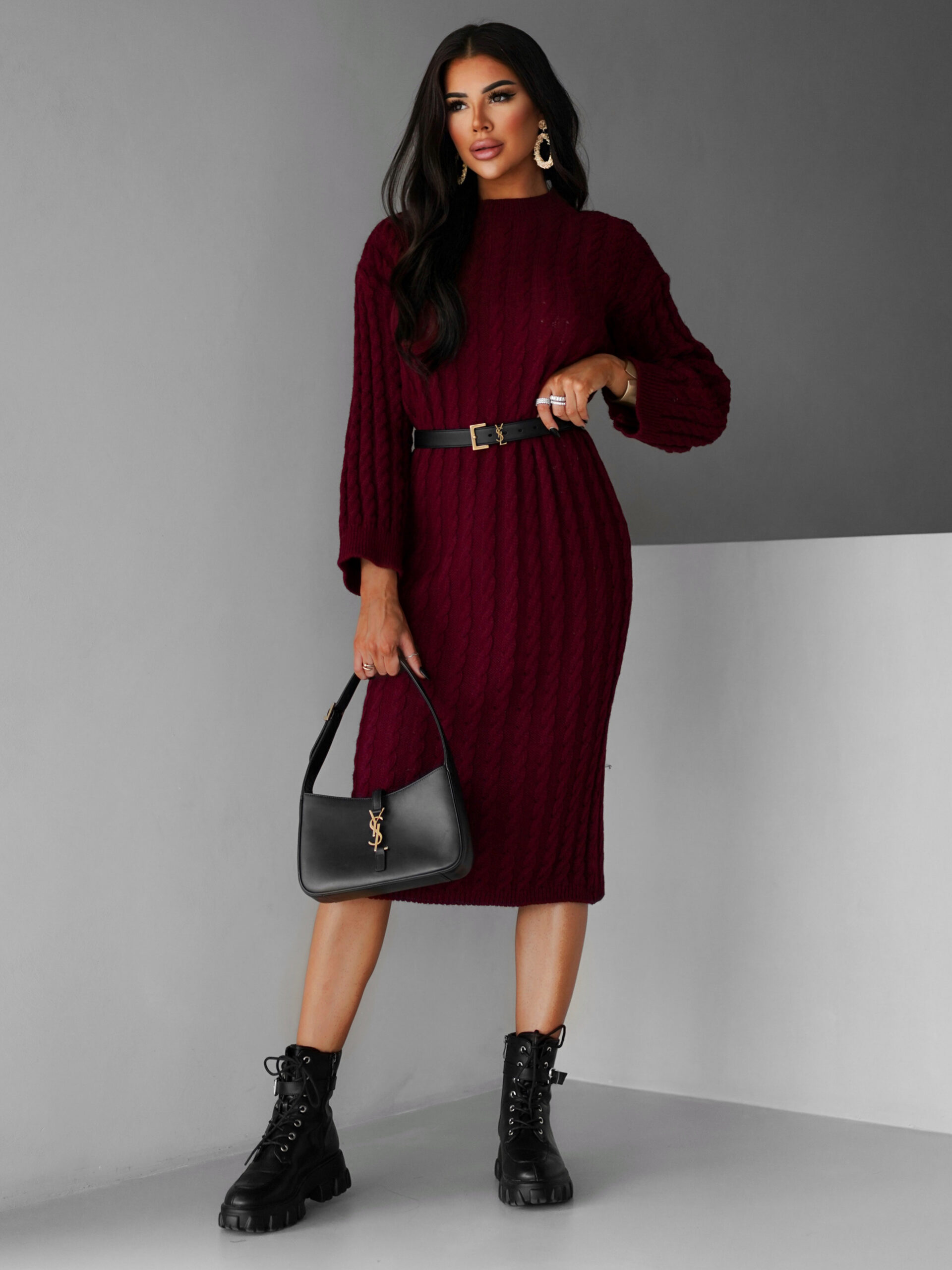 Vínové maxi svetrové šaty FRIDOLINA Velikost: ONESIZE