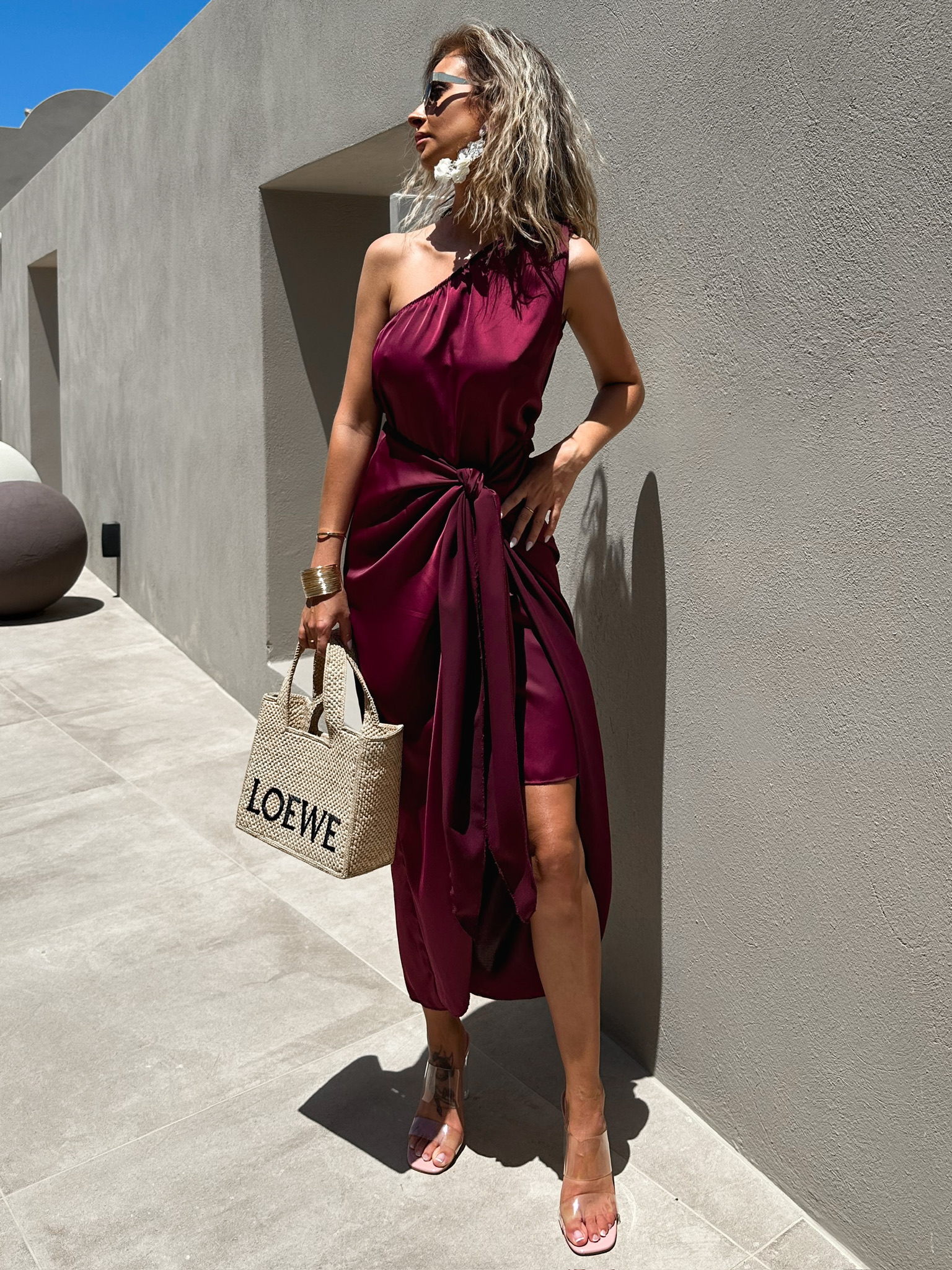 Vínové saténové midi šaty LIBIOSI Velikost: ONESIZE
