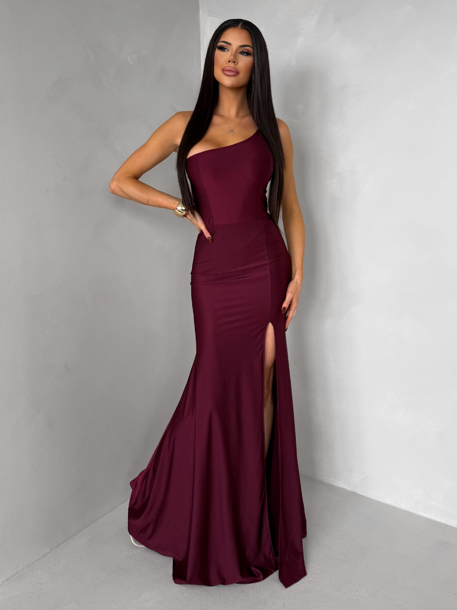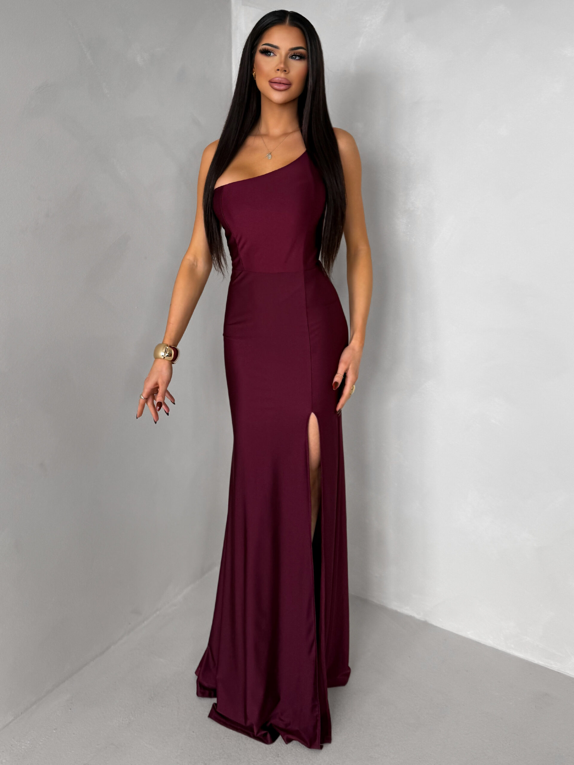 Vínové společenské dlouhé šaty GAREVIA s rozparkem Velikost: ONESIZE