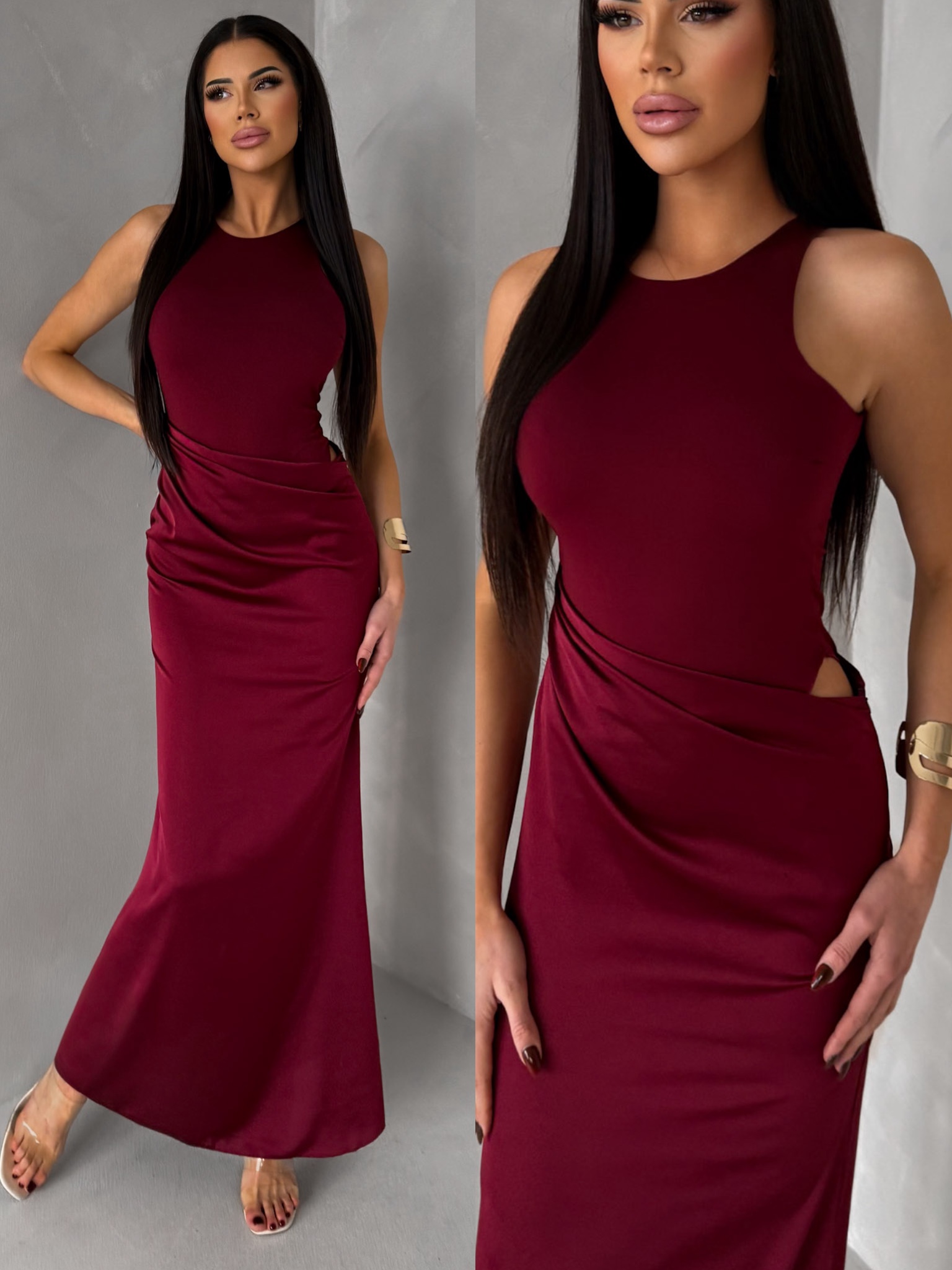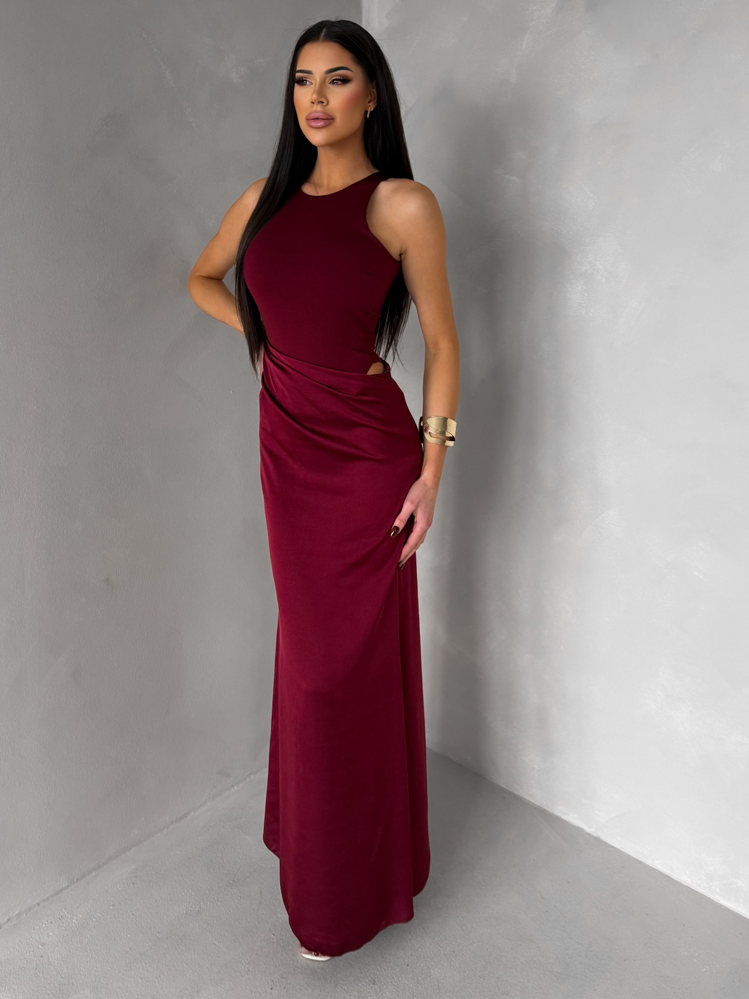 Vínové společenské dlouhé šaty VELMORO s body Velikost: ONESIZE