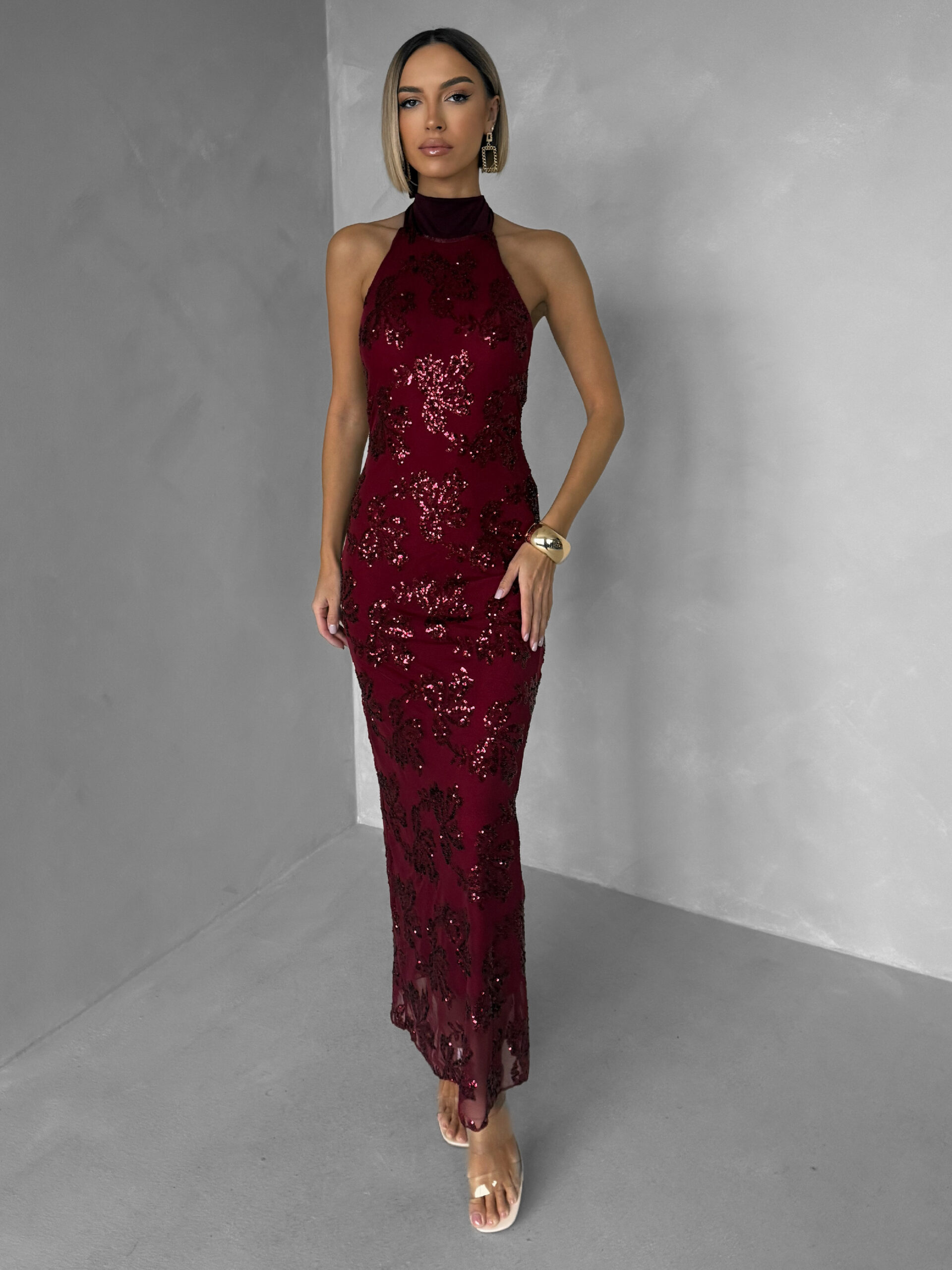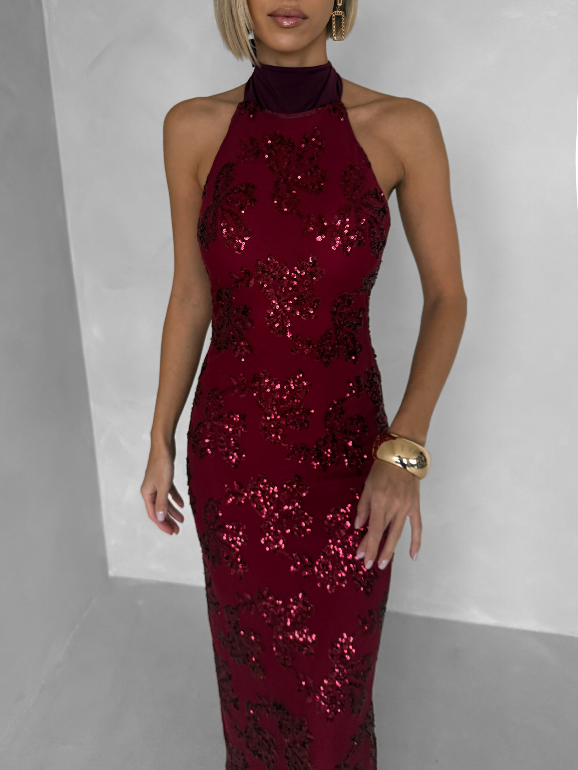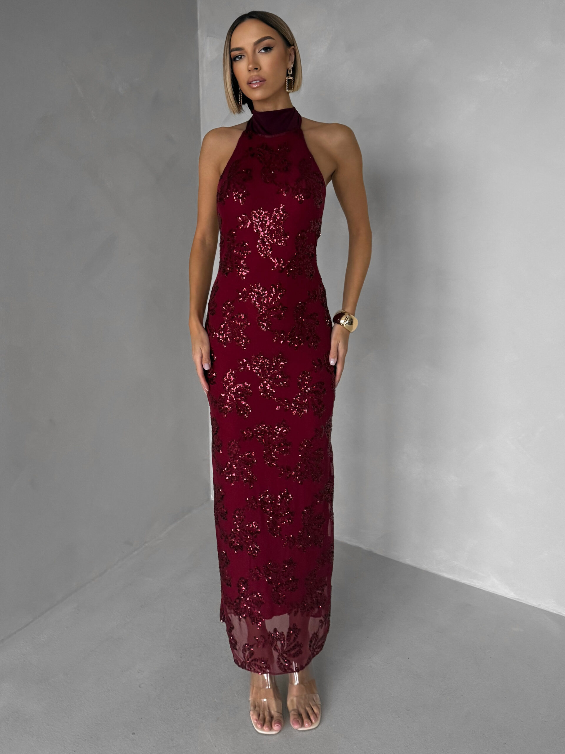 Vínové společenské dlouhé šaty VELVET s flitry Velikost: ONESIZE