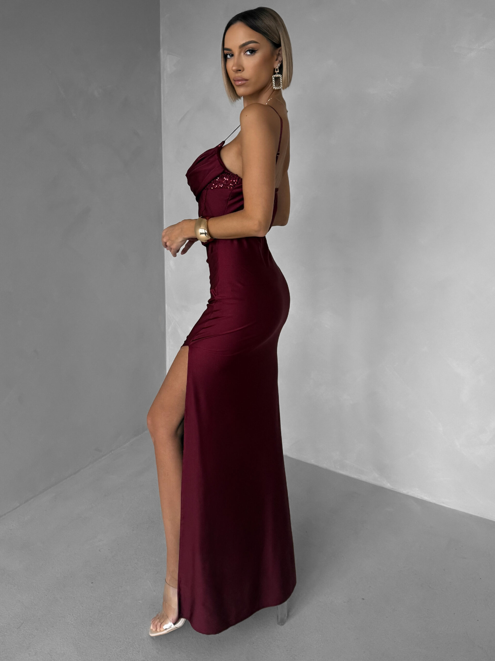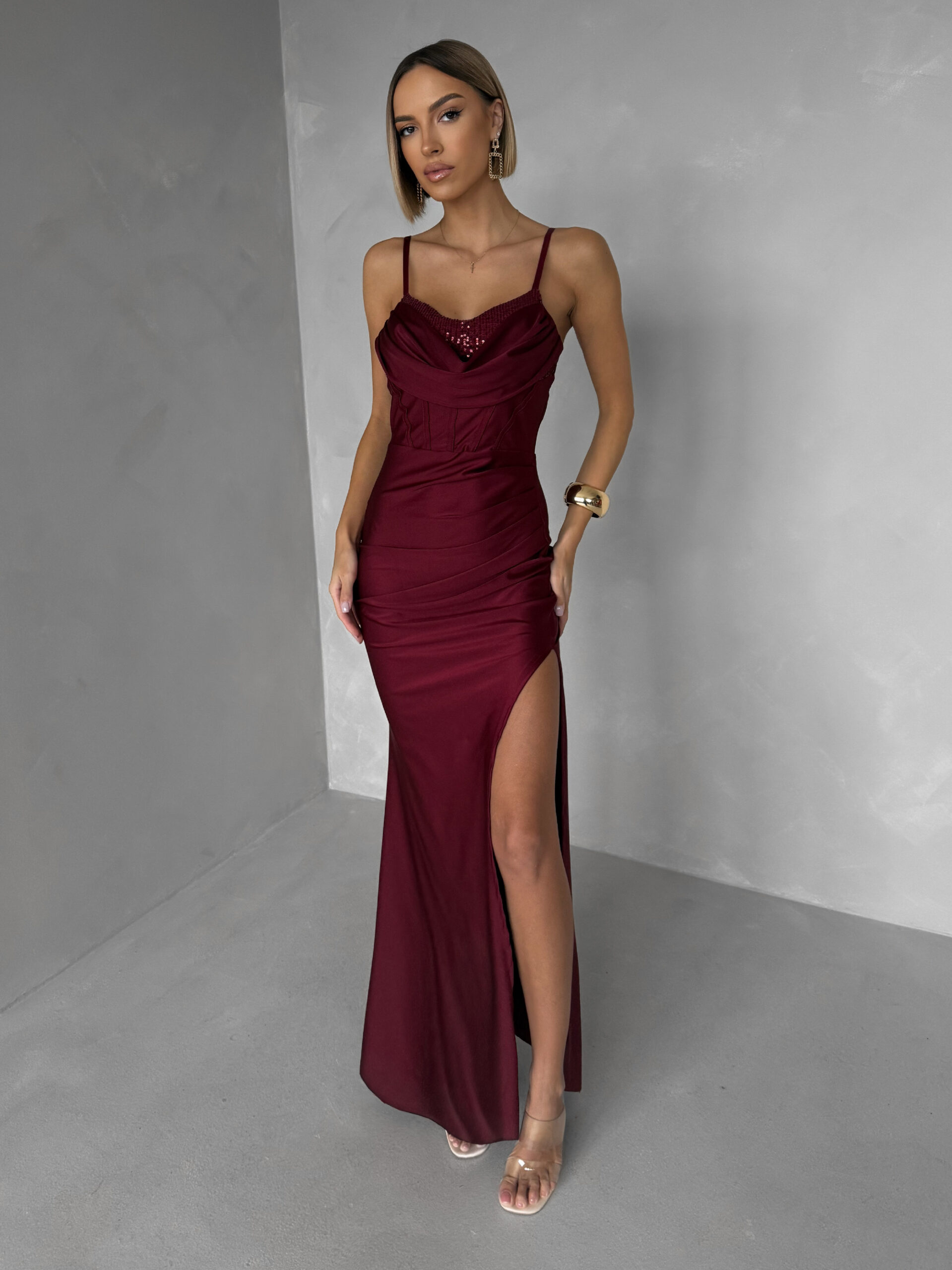 Vínové společenské korzetové dlouhé šaty FAYELA Velikost: ONESIZE