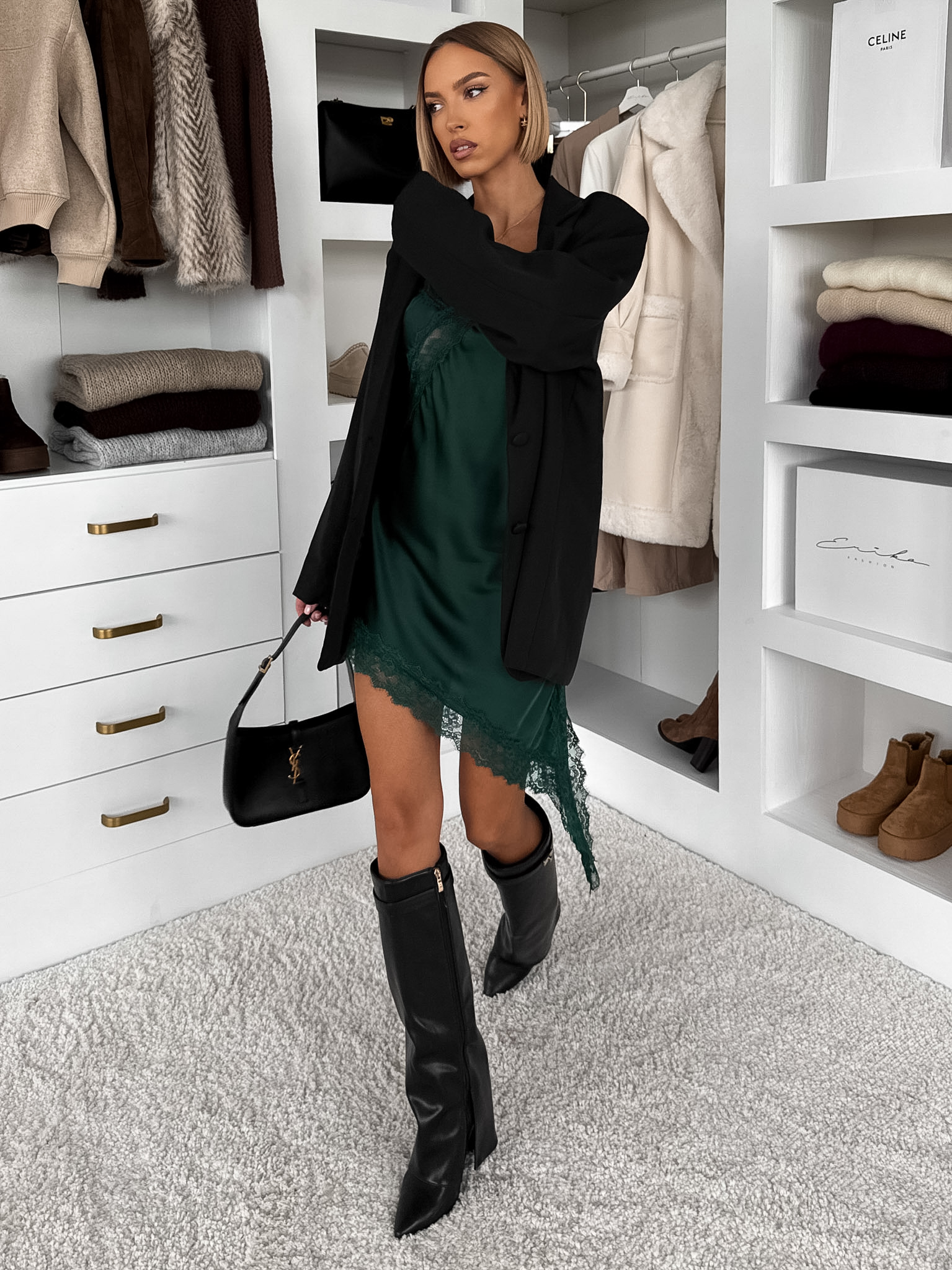 Zelená saténová krajková košilka šaty ZOMARI Velikost: ONESIZE