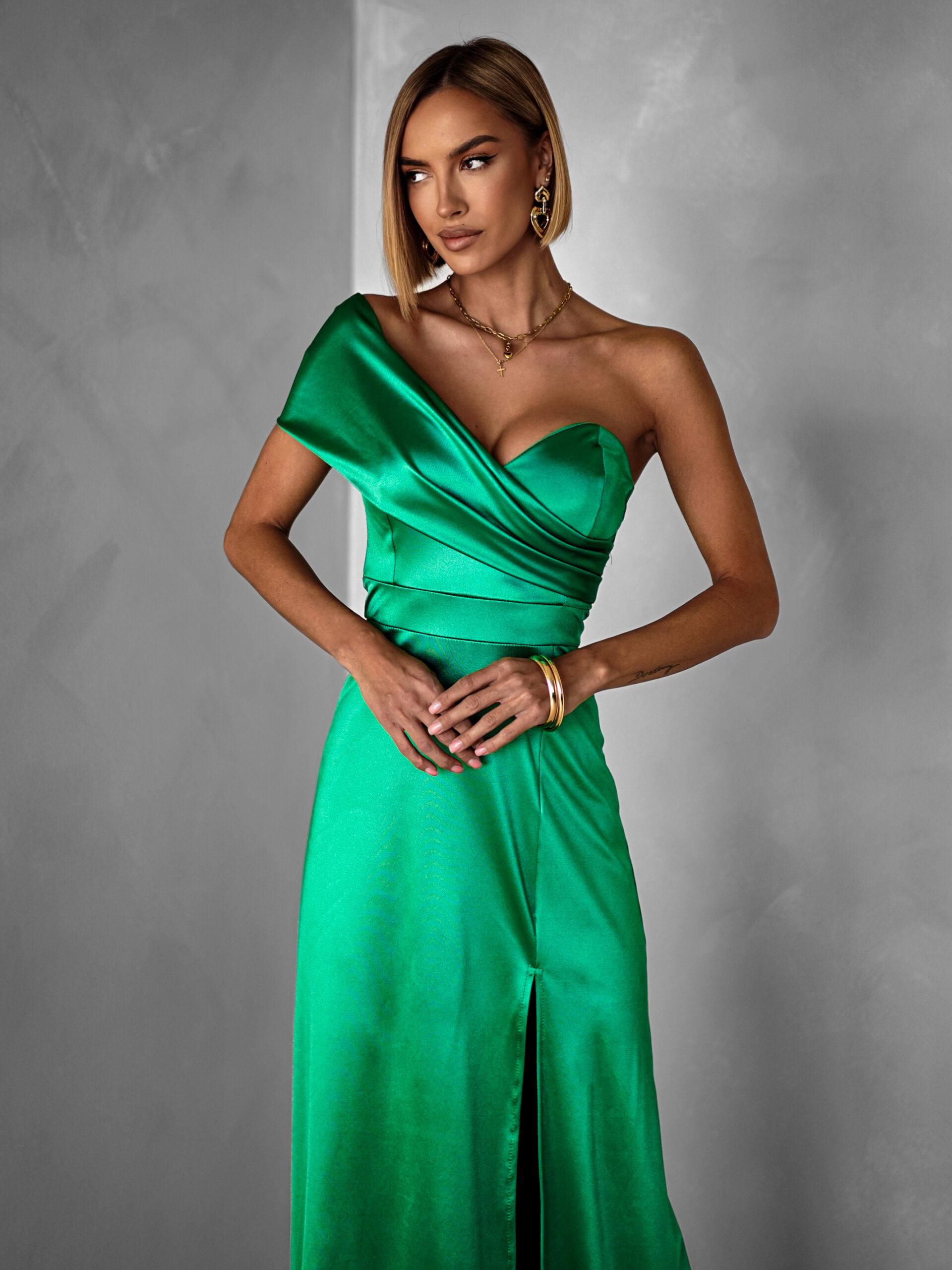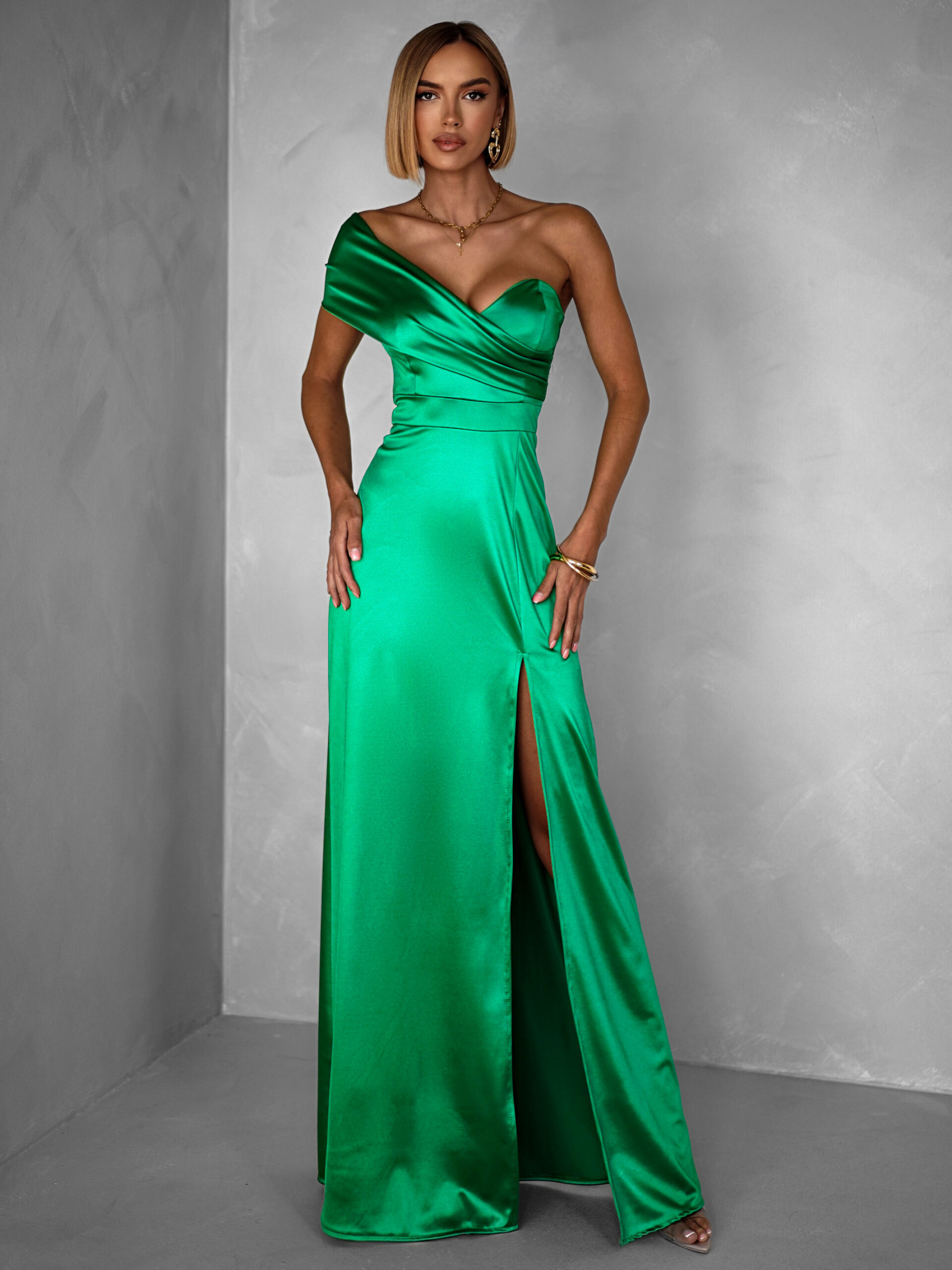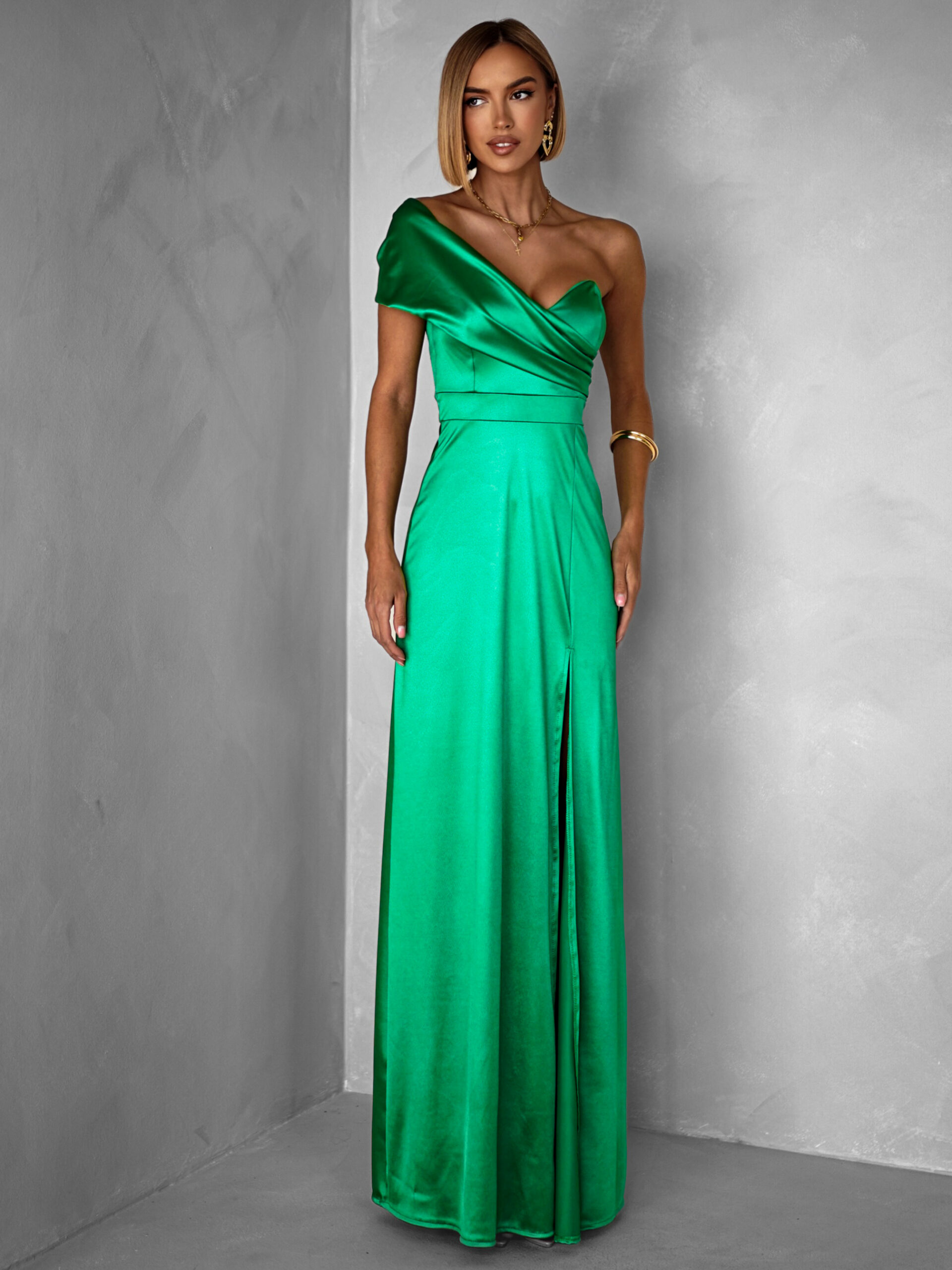 Zelené dlouhé asymetrické společenské šaty SIMONE Velikost: ONESIZE