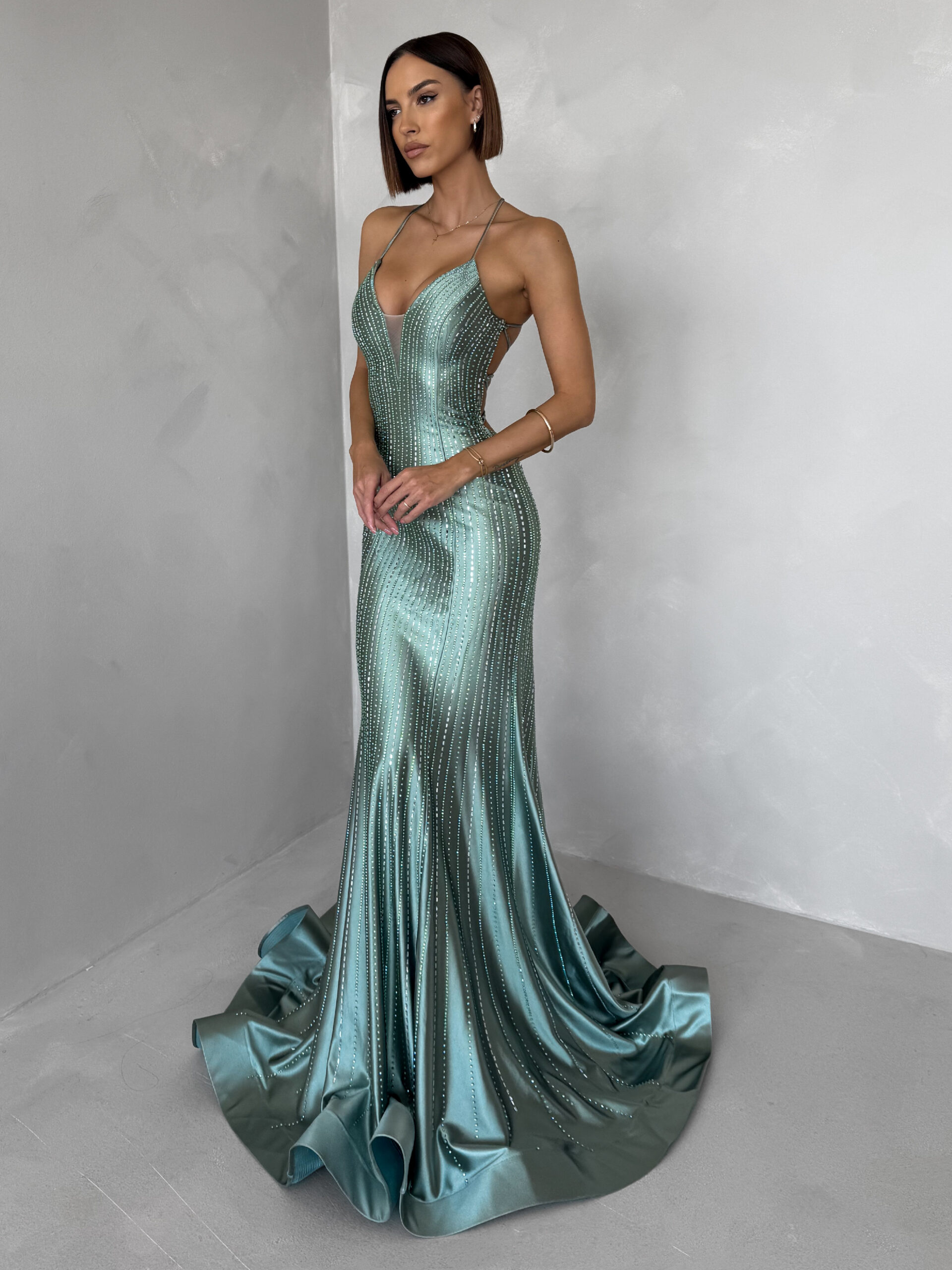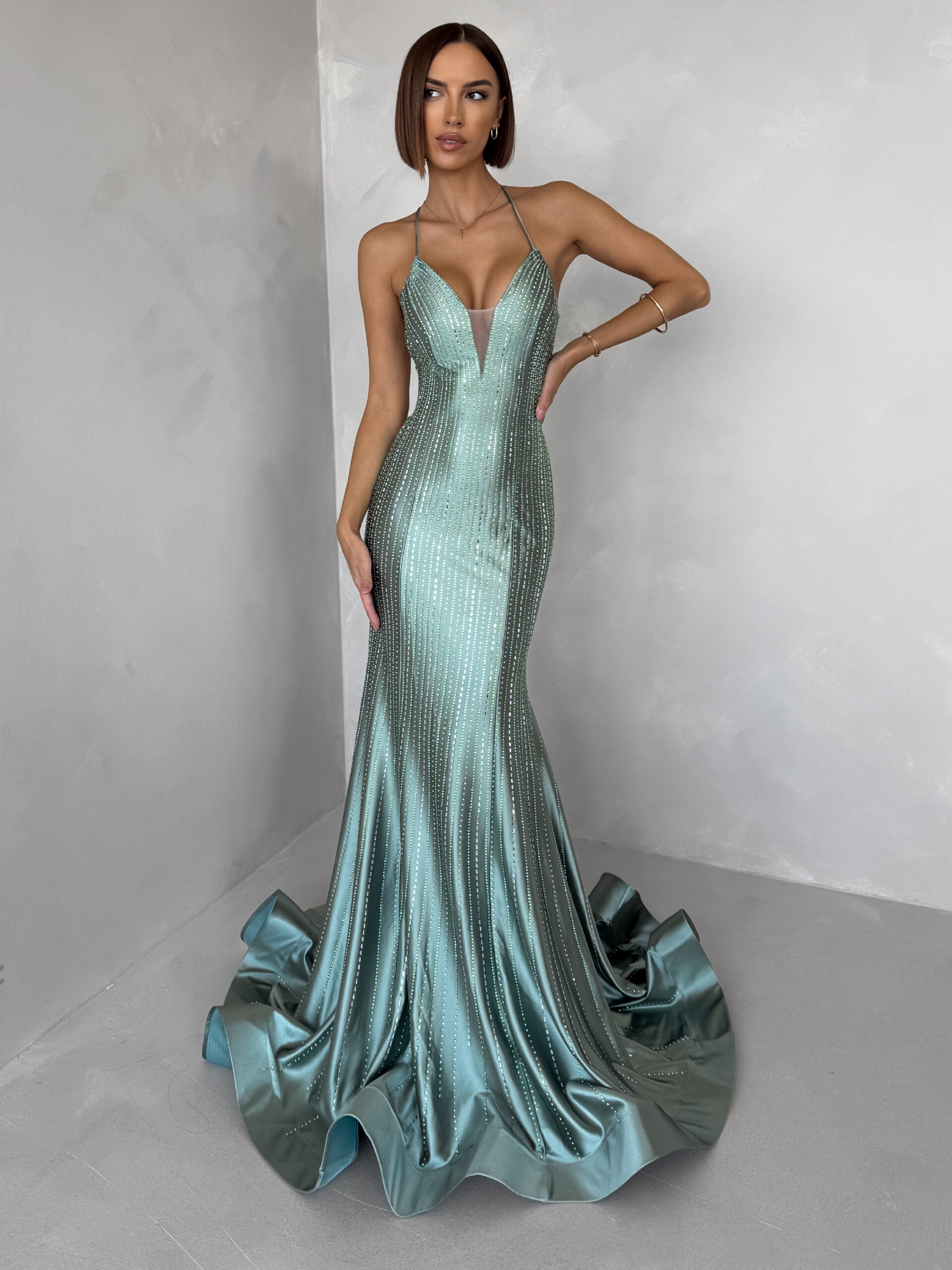 Zelené plesové dlouhé třpytivé šaty GALDYNE Velikost: S