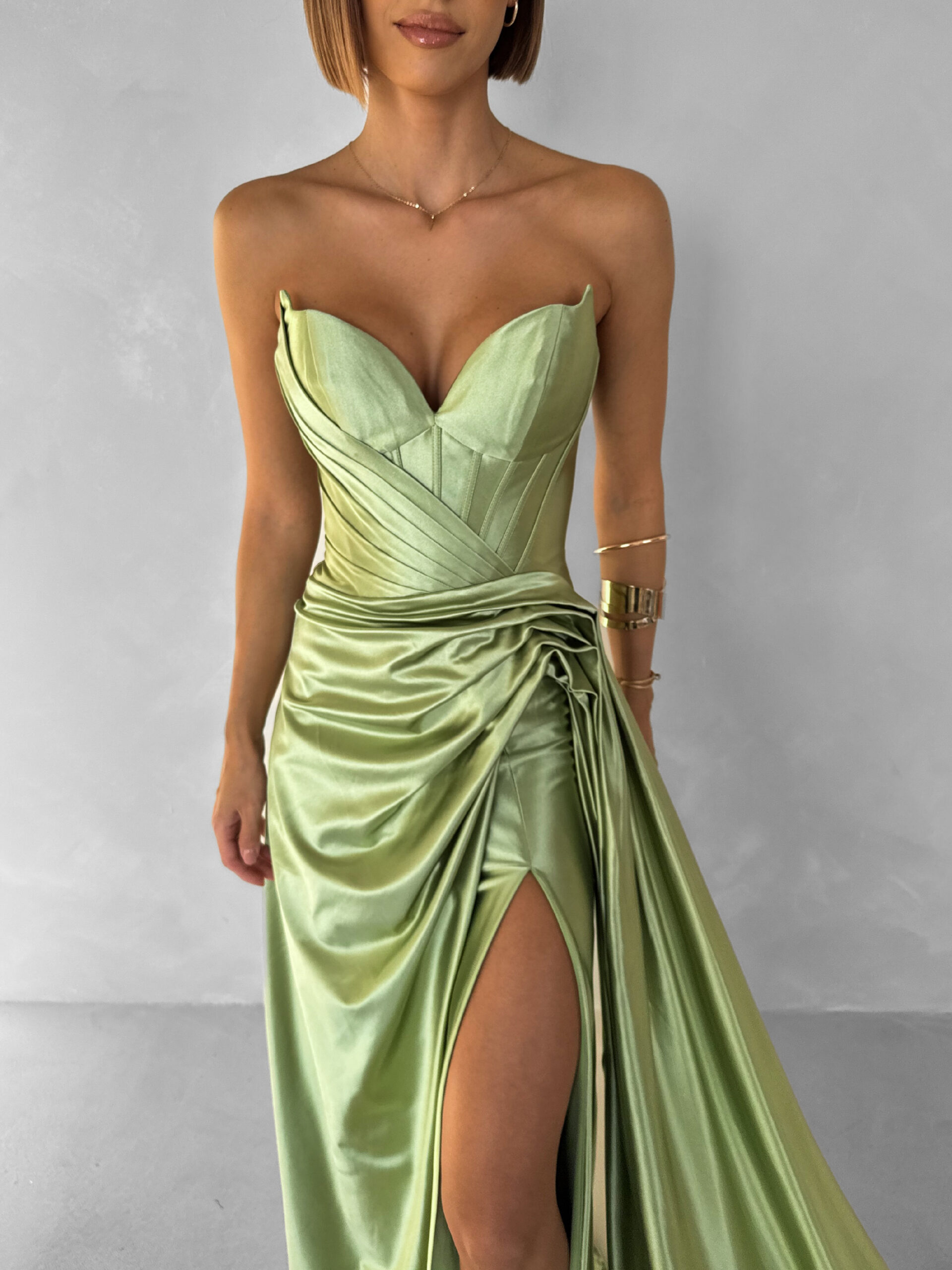 Zelené plesové korzetové dlouhé šaty CELYNDRA s vlečkou Velikost: L
