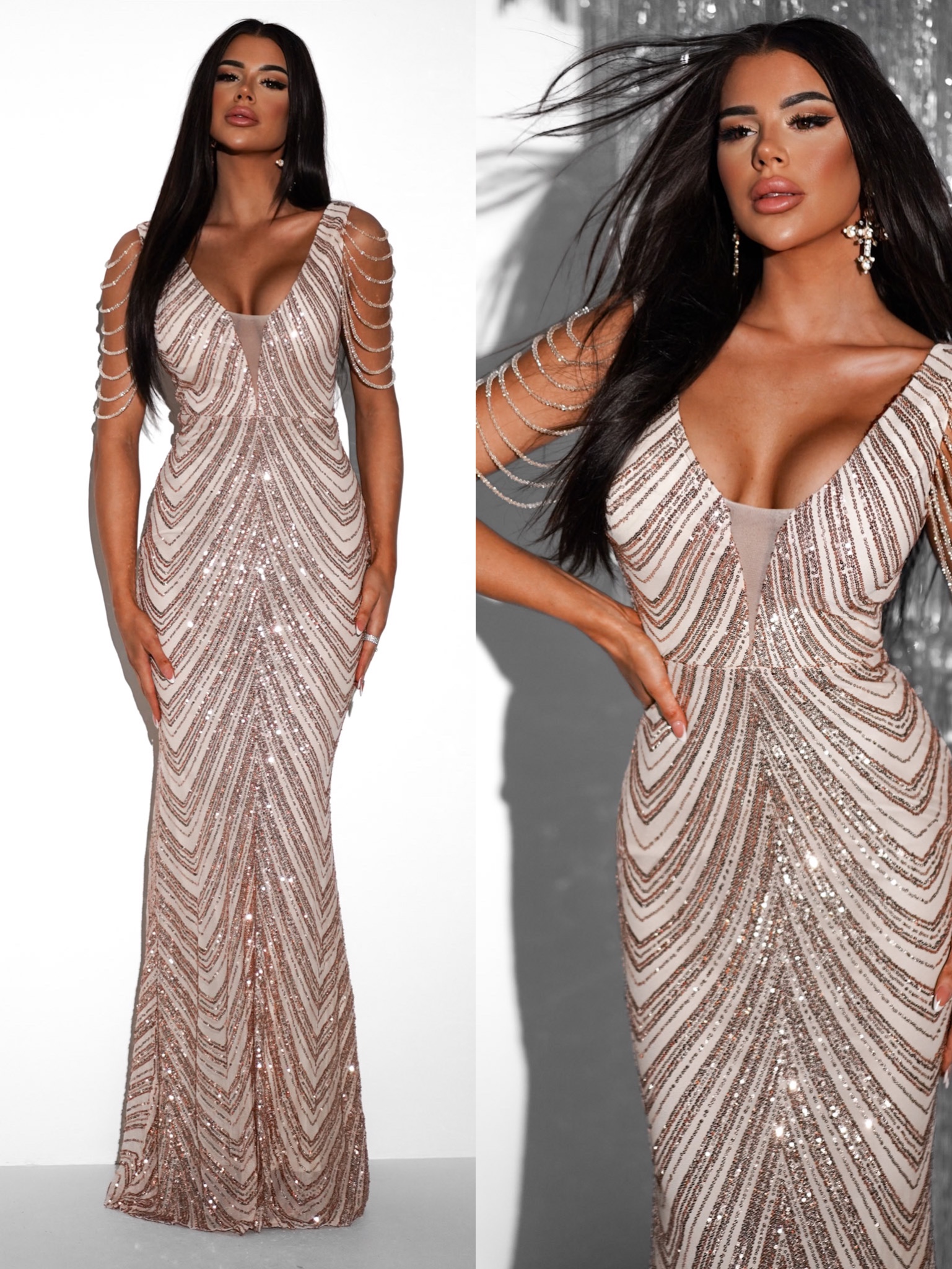 Zlaté elegantní večerní flitrované šaty PEPER Velikost: L