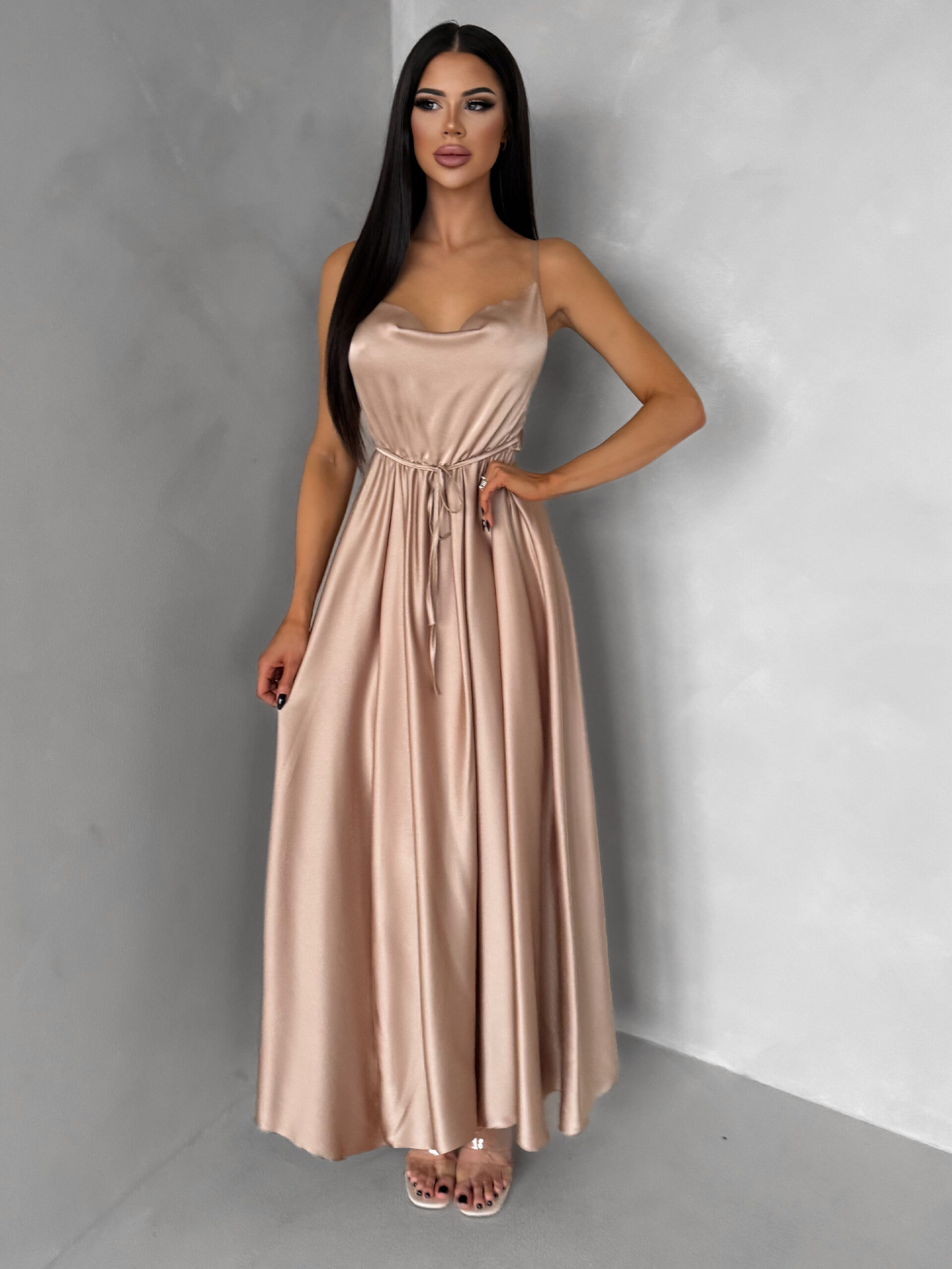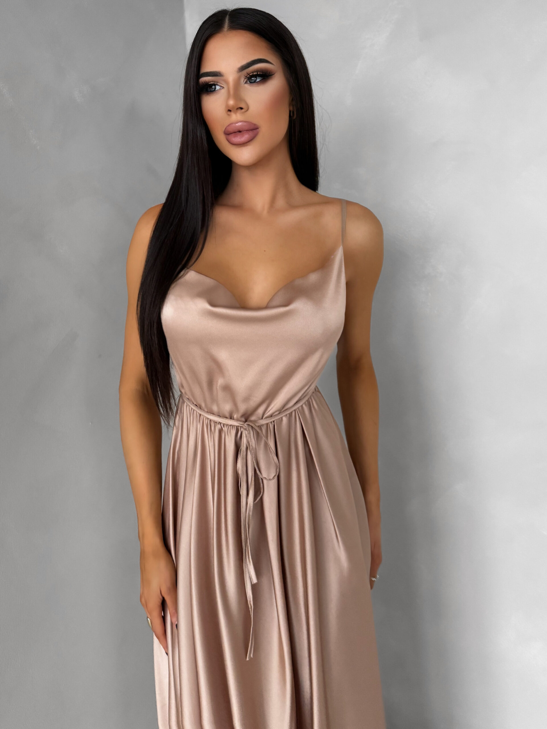Zlaté saténové elegantní šaty YASMINE s rozparkem Velikost: ONESIZE