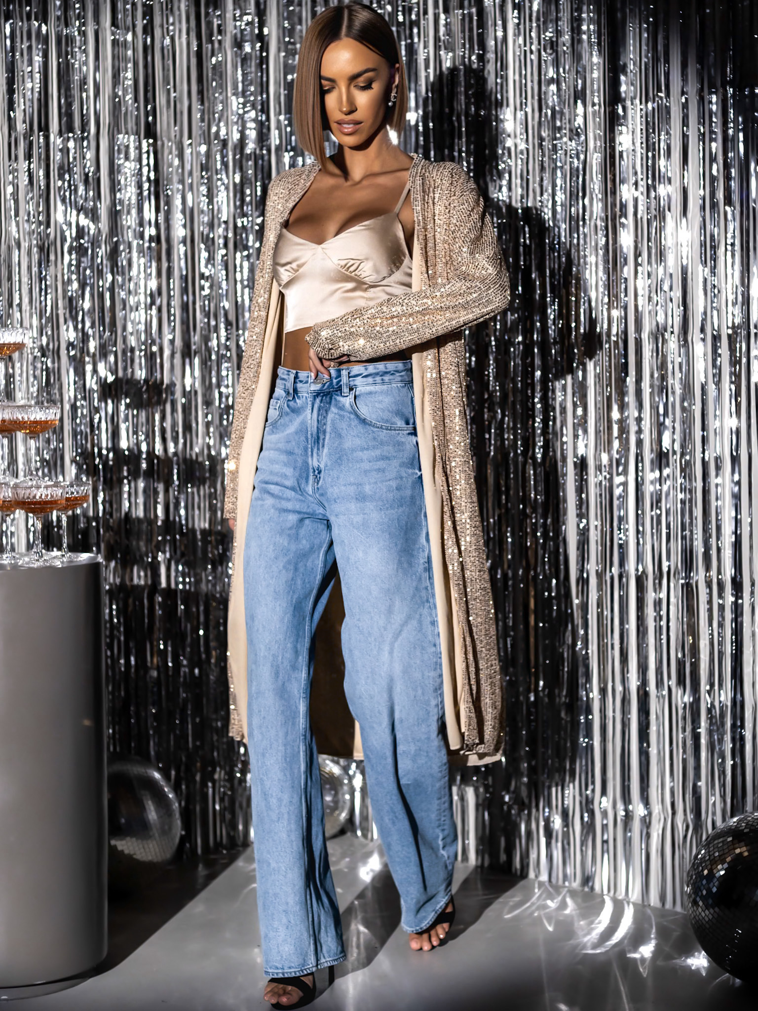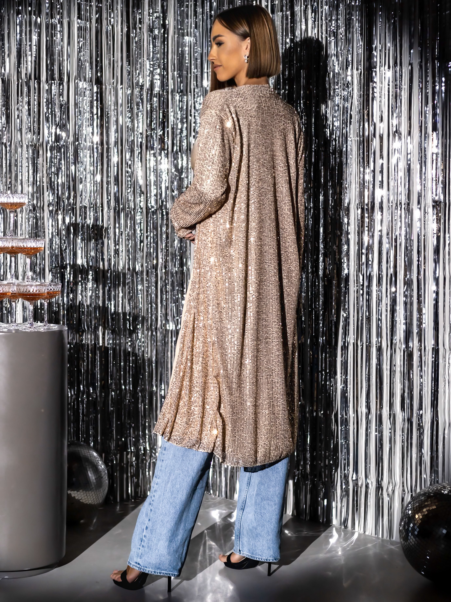Zlatý třpytivý cardigan YURIDIA s flitry Velikost: ONESIZE