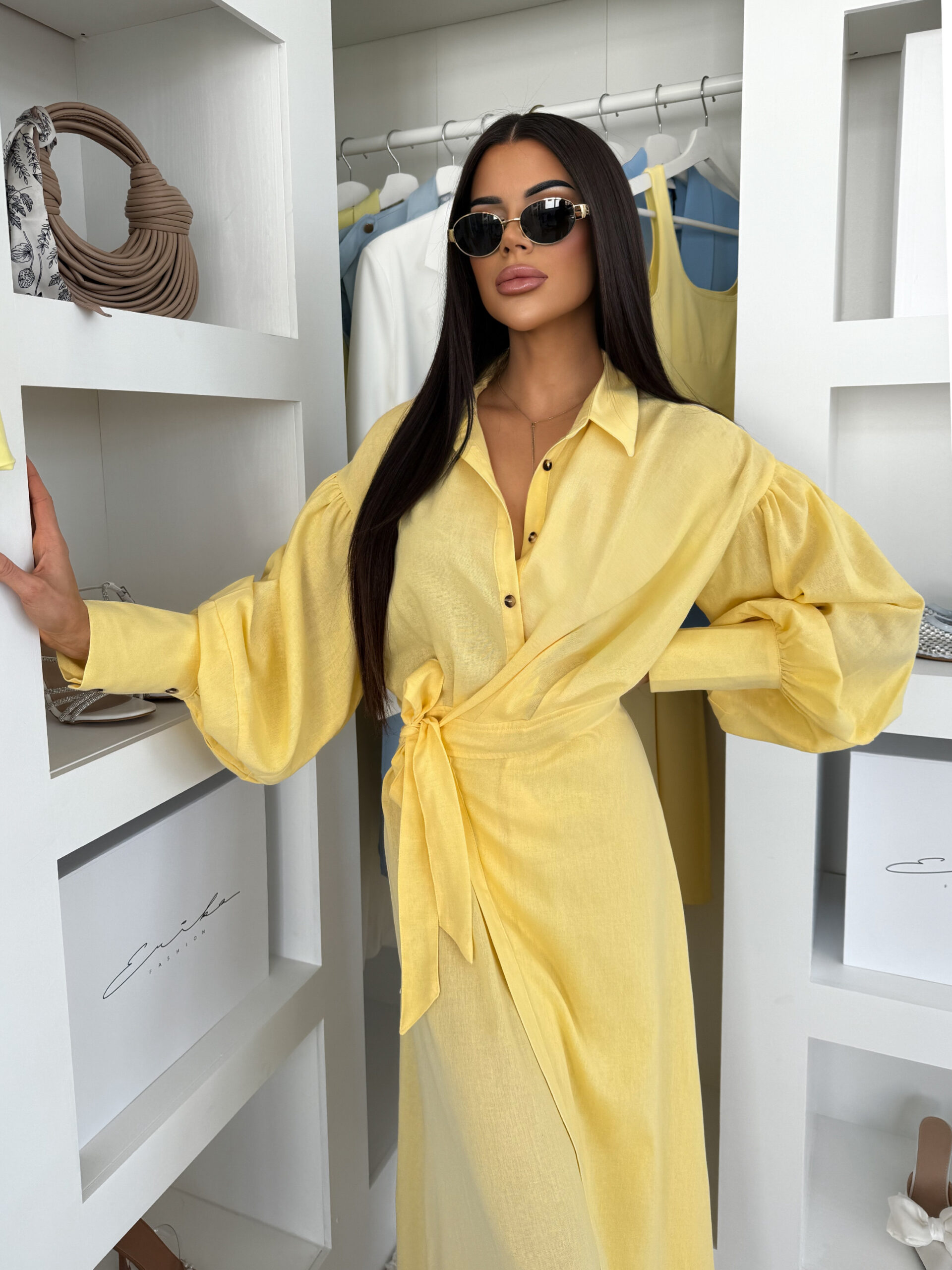 Žluté maxi dlouhé košilové šaty MATRIX Velikost: S/M