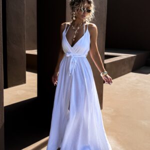 Bílé společenské dlouhé šaty AMIREZA s rozparkem Velikost: M